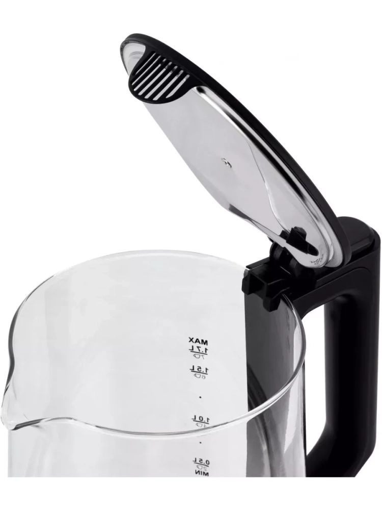 Корпус выполнен из боросиликатного стекла — термостойкого и легкого материала, устойчивого к повреждениям и воздействию высоких температур. Он не темнеет со временем, не окрашивается даже при интенсивной эксплуатации и не выделяет посторонних веществ в воду. Благодаря прозрачным стенкам и подсветке процесс закипания становится визуально заметным: LED-индикация включения не только выполняет практическую функцию, но и создает визуальный акцент в интерьере кухни.