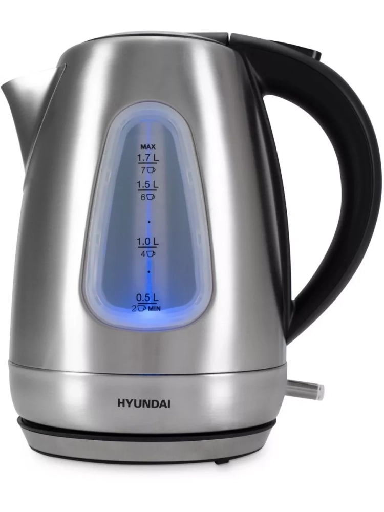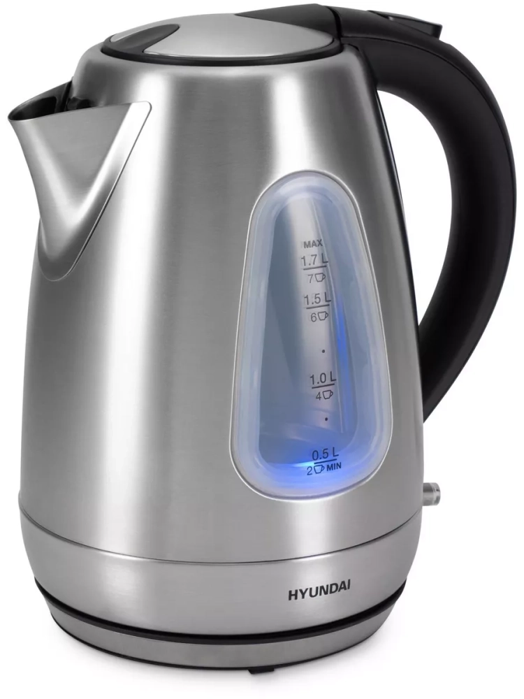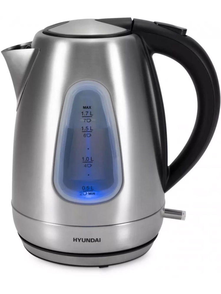 Электрический чайник Hyundai HYK-S7407 объемом 1,7 л и мощностью 2200 Вт позволит быстро кипятить или подогреть воду сразу на 7 порций чая или любого другого напитка. Серебристо-матовый стальной корпус обеспечивает ему презентабельный внешний вид, прочность и долговечность.