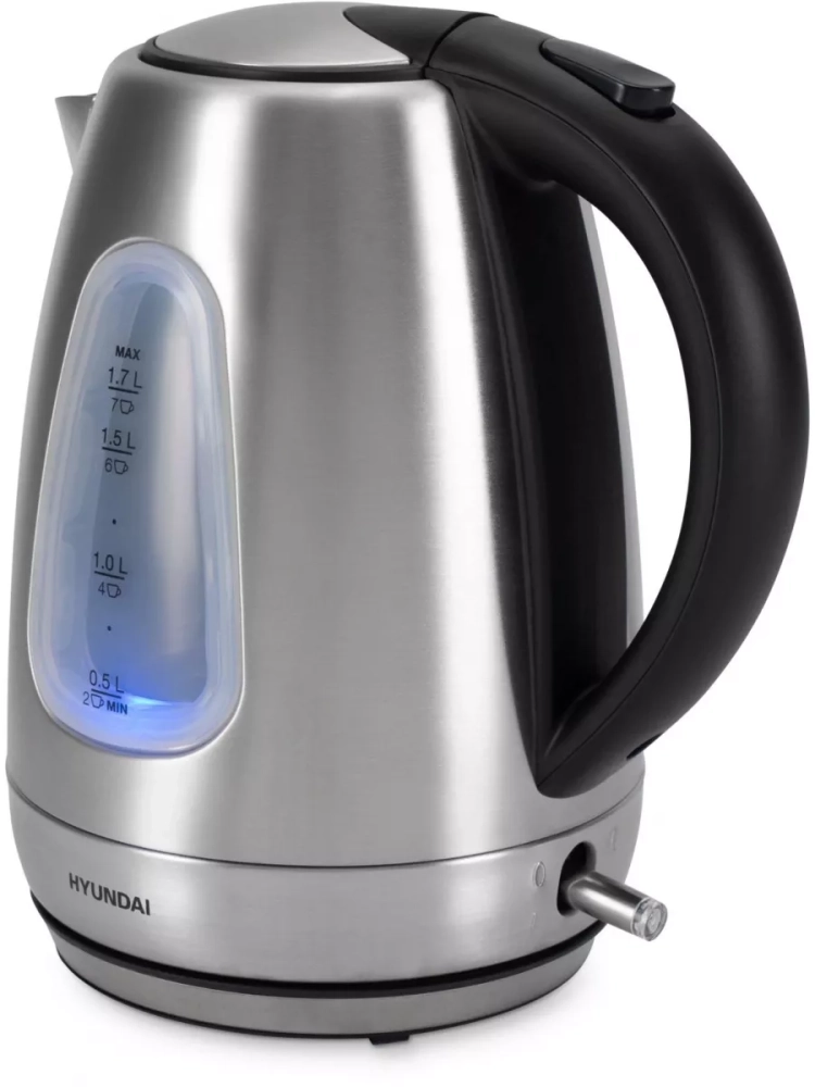 Чайник электрический Hyundai HYK-S7407 серебристый матовый/черный, объём 1.7л, мощность 2200Вт, материал корпуса: металл.