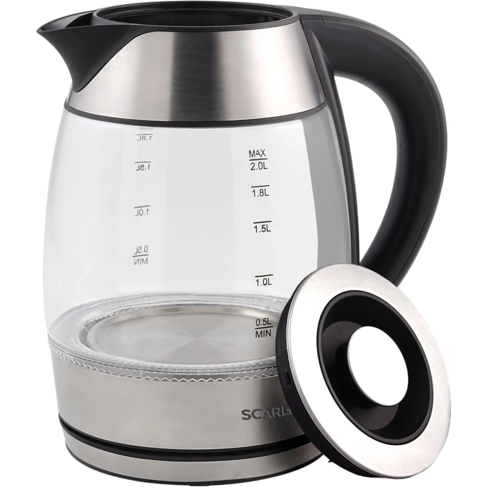 Чайник SCARLETT SC-EK27G13, электрический, 2200Вт, 2л, стекло, сталь/черный