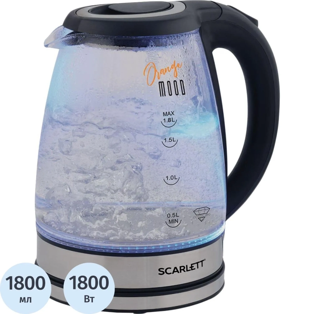 Чайник SCARLETT SC-EK27G36,электрический, стекло, 1800Вт, 1.8л, черный