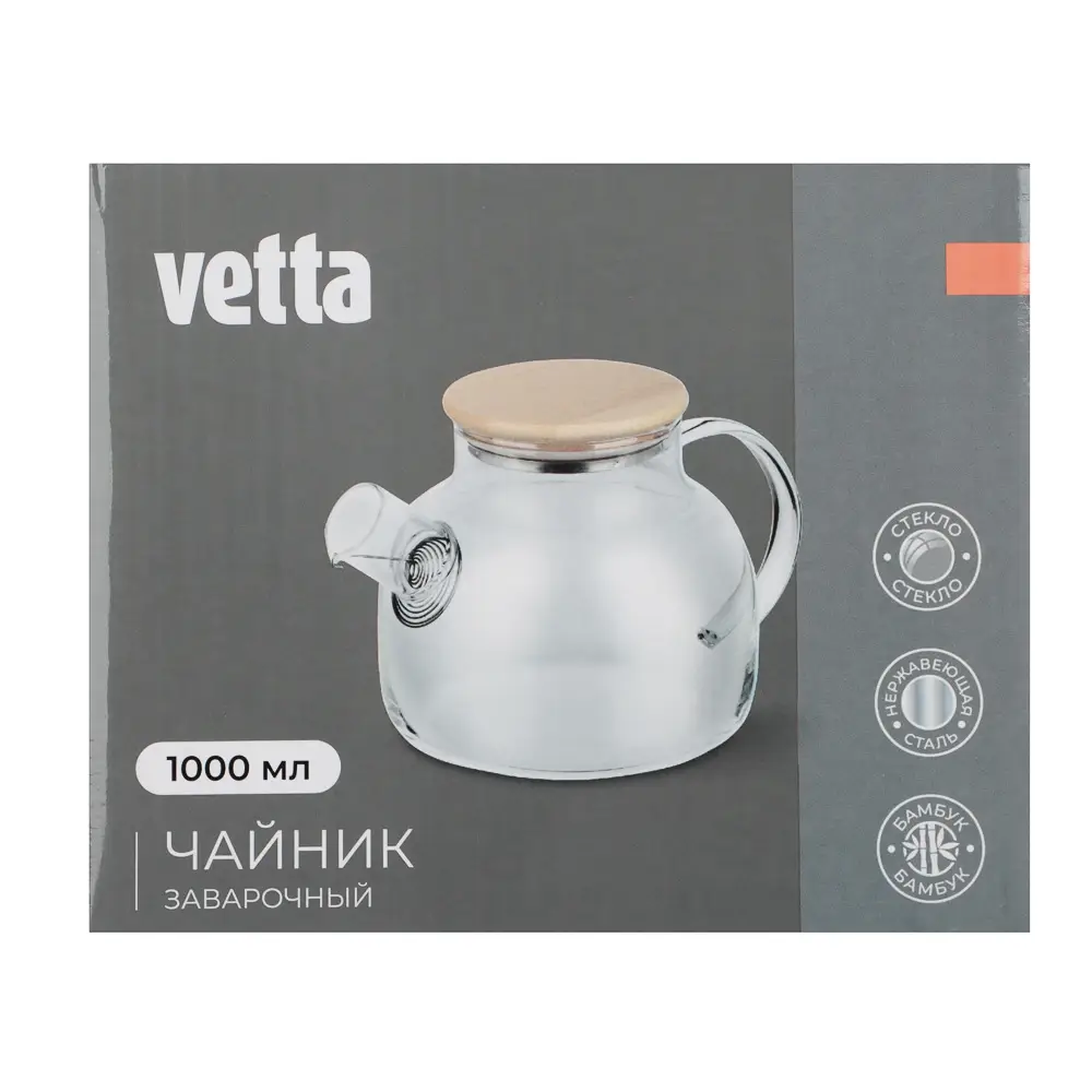 Чайник заварочный тм VETTA Эко, стекло, бамбуковая крышка, 1000мл