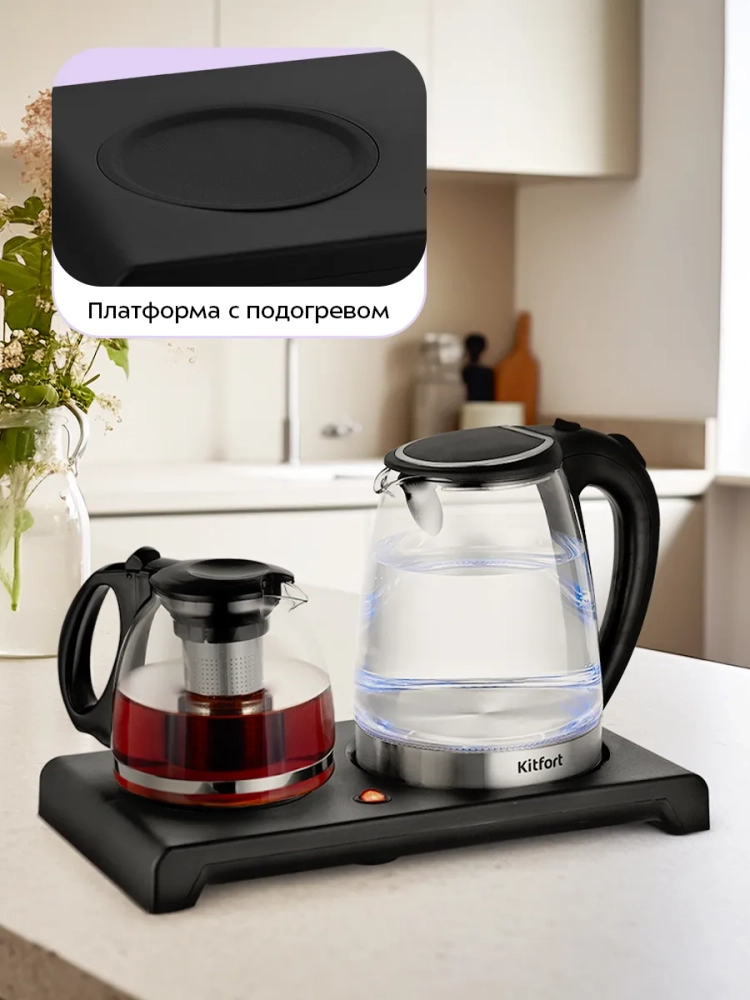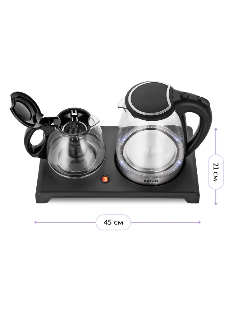 Стильный и функциональный чайный набор Kitfort КТ-6180 состоит из чайника емкостью 2 л, кувшина с фильтром для заварки емкостью 1,2 л и базы. Набор поможет вам не только вскипятить воду, но и заварить чай или кофе.