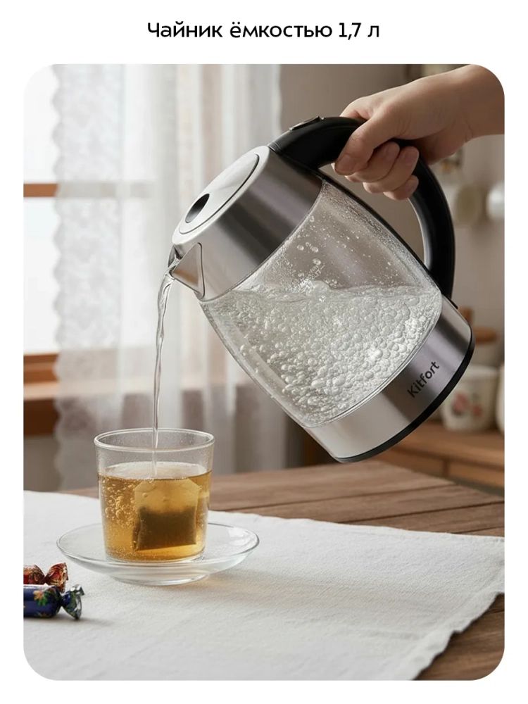Чайный набор Kitfort КТ-6608 — это идеальное решение для вашей кухни, сочетающее в себе функциональность и стиль. Электрический чайник объемом 1,7 литра и стеклянный заварочный чайник с фильтром на 1 литр обеспечат удобство и комфорт в приготовлении любимых напитков. Этот умный электрочайник позволяет не только вскипятить воду, но и нагреть ее до заданной температуры: 50, 60, 70, 80 или 90 °C, что делает его незаменимым помощником на кухне.