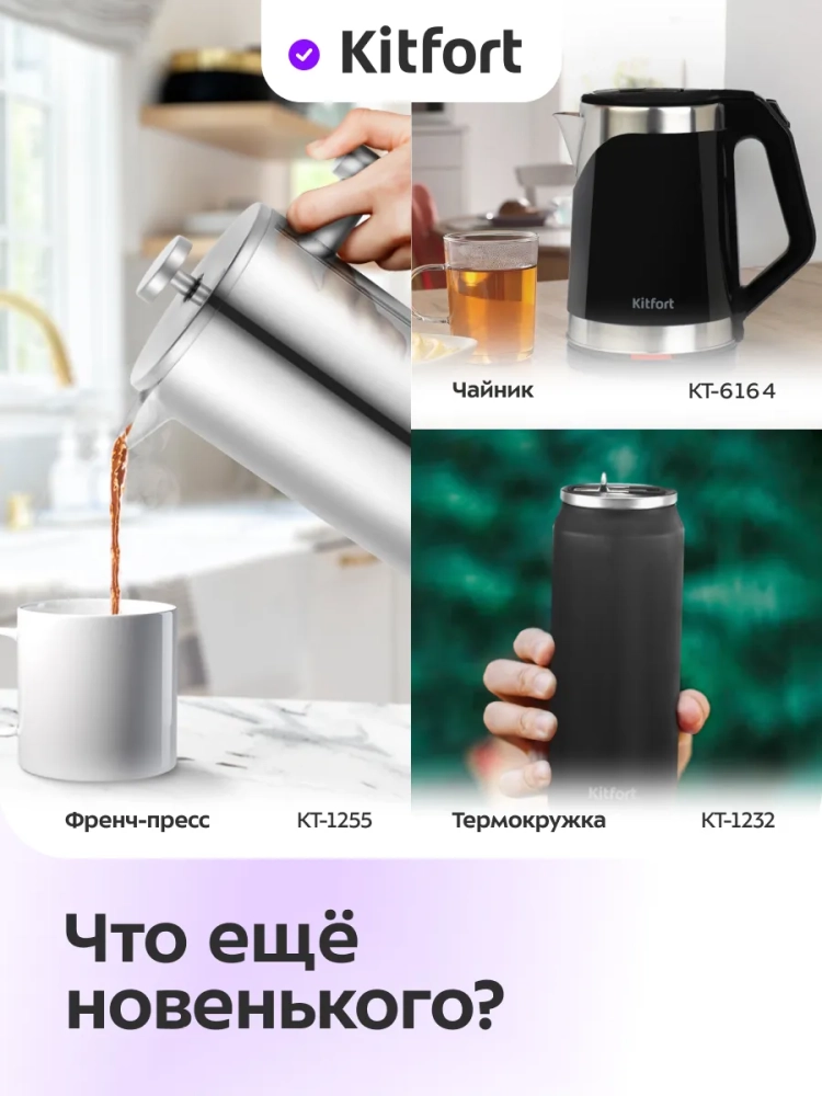 Электрический чайник Kitfort — это не просто техника, а надежный помощник на вашей кухне. Киткоф и другие чайники от Kitfort отличаются высоким качеством и продуманным дизайном. Этот набор станет отличным дополнением к вашему кухонному арсеналу, обеспечивая удобство и удовольствие от каждого чаепития.