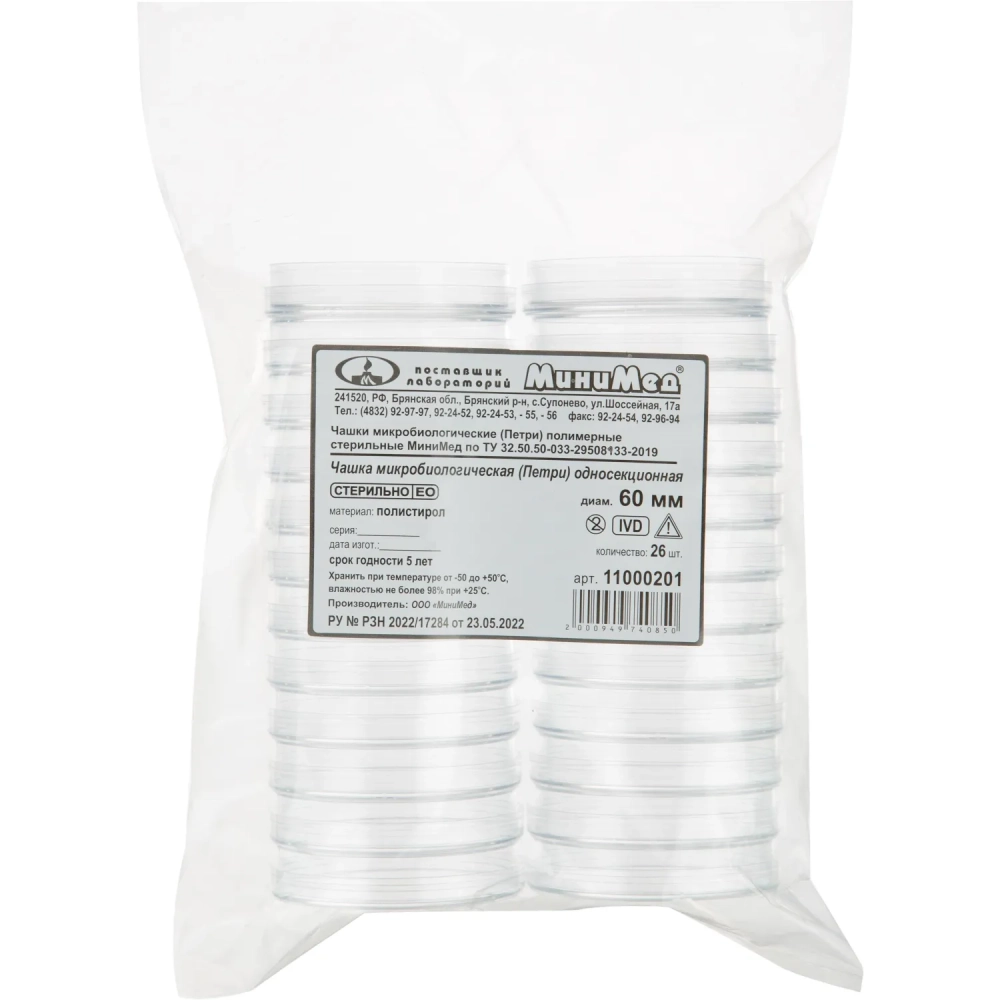 Чашка Петри 60 мм, стер., п/с, уп/26 шт Гритмед 11000201