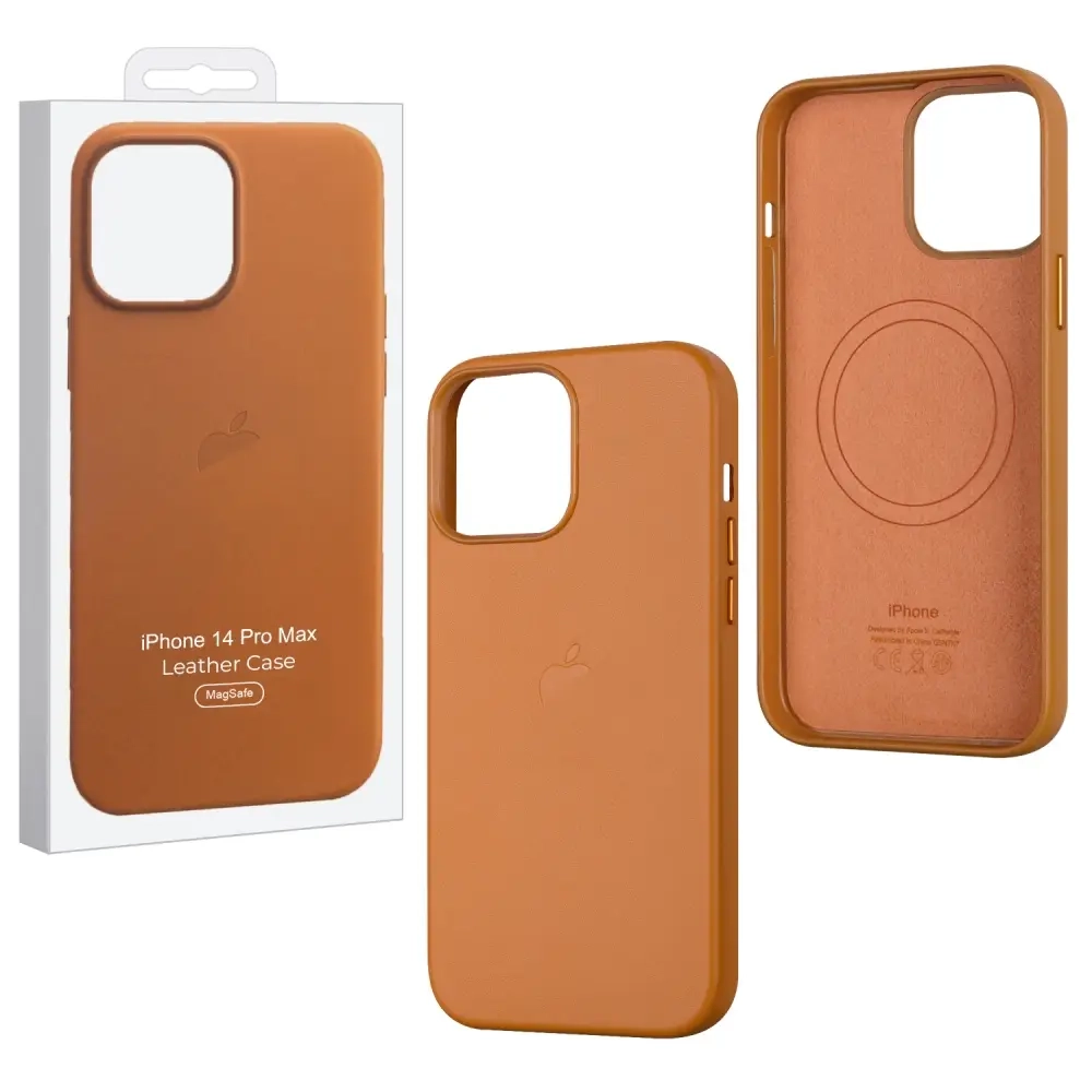 Чехол iPh 14 Pro Max Leather Case 100% ORG Golden Brown
