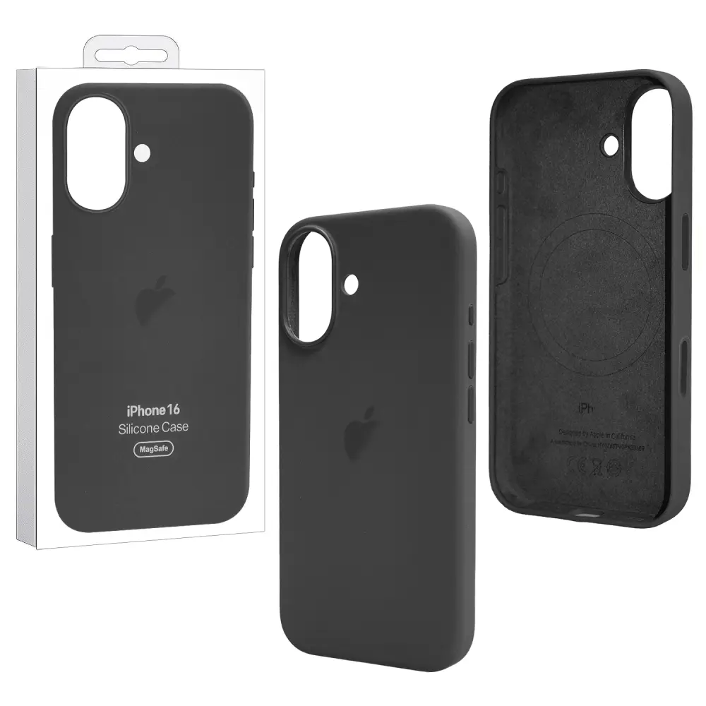 Чехол iPh 16 Silicon Case 100% ORG (MagSafe + анимация NFC Clear) c LOGO Black