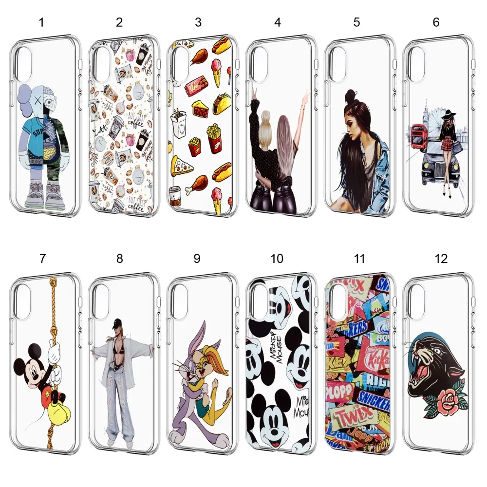 Чехол iPh X прозрачный TPU 1.2 мм с принтами в ассортименте