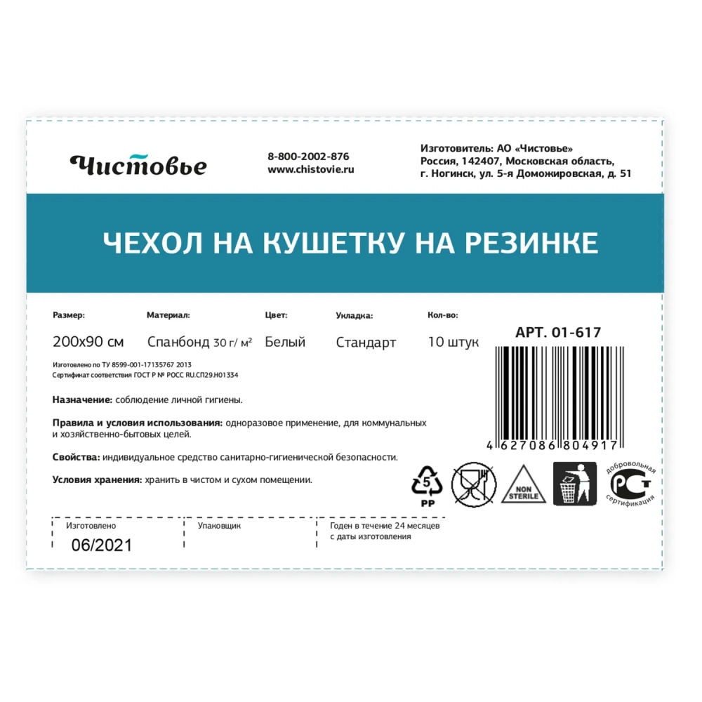 Чехол на кушетку на резинке спанбонд 200x90, белый (10шт/уп)