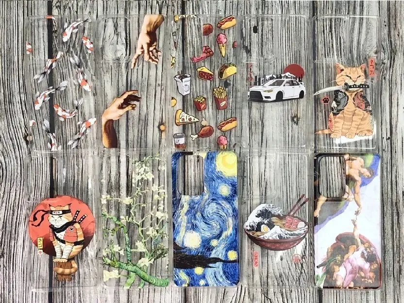 Чехол Samsung S21 Ultra TPU 1.0mm прозрачный с принтами в ассортименте