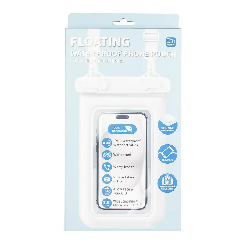 Надежный водонепроницаемый чехол (IPX8) с трехмерной губчатой структурой, обеспечивающий 100% защиту вашего смартфона от воды. В комплекте удобный ремешок для крепления на шею – идеально для плавания, пляжного отдыха или активных прогулок. Сохраняет полную функциональность сенсорного экрана, а уникальная плавучая конструкция не даст вашему телефону утонуть