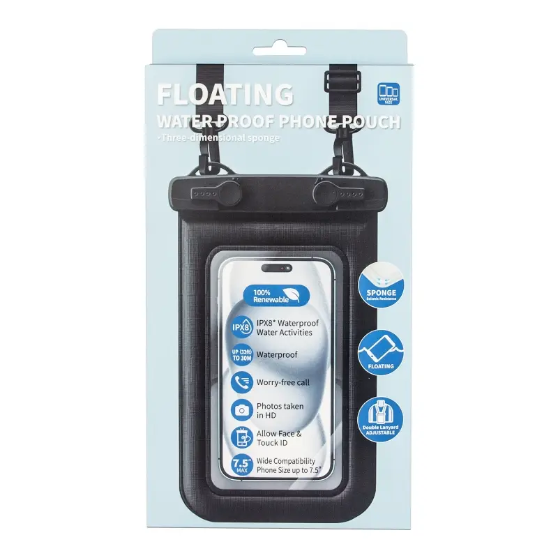Надежный водонепроницаемый чехол (IPX8) с трехмерной губчатой структурой, обеспечивающий 100% защиту вашего смартфона от воды. В комплекте удобный ремешок для крепления на шею – идеально для плавания, пляжного отдыха или активных прогулок. Сохраняет полную функциональность сенсорного экрана, а уникальная плавучая конструкция не даст вашему телефону утонуть