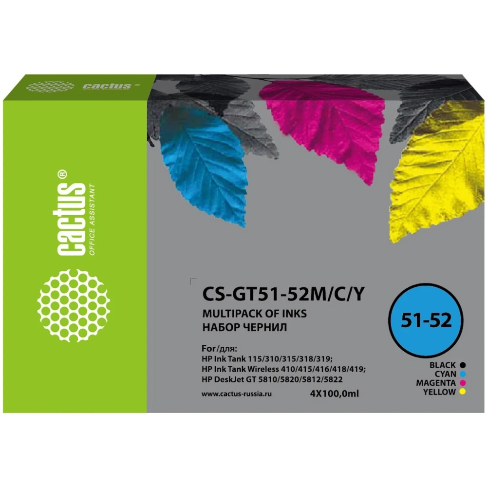 Чернила Cactus CS-GT51-52M/C/Y набор 4x100 мл для DeskJet GT 5810/5820/5812