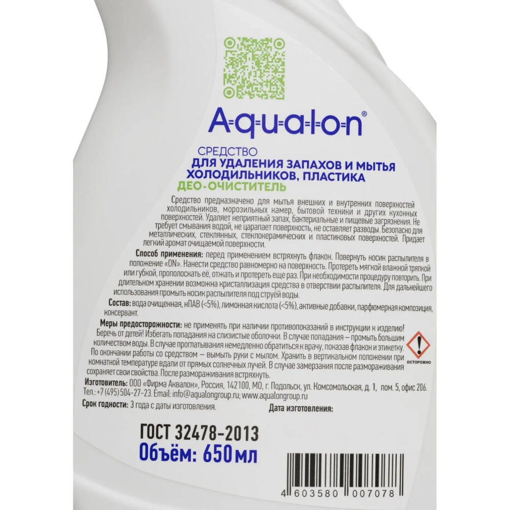 Чистящее средство для кухни для холодильн и удал запахов AQUALON, 650мл