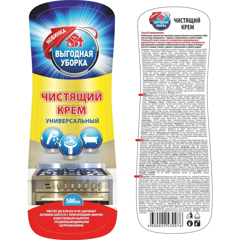 Чистящее средство крем ВЫГОДНАЯ УБОРКА Универсальный 500мл, 2453