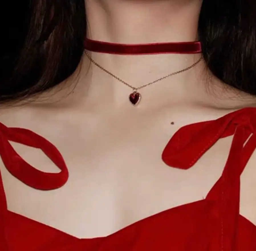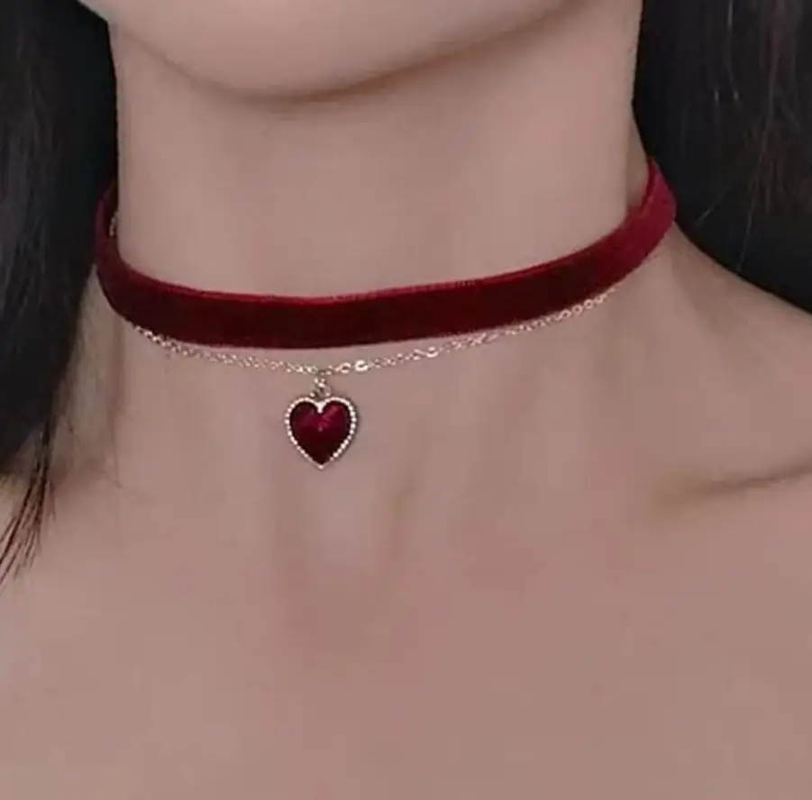 Чокер на шею бархатный с цепочкой Сердце черный