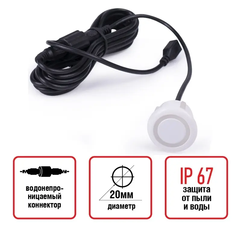 Датчик парктроника 20 мм (белый) с проводом 2,5м AVS PS-20 (1 шт.)