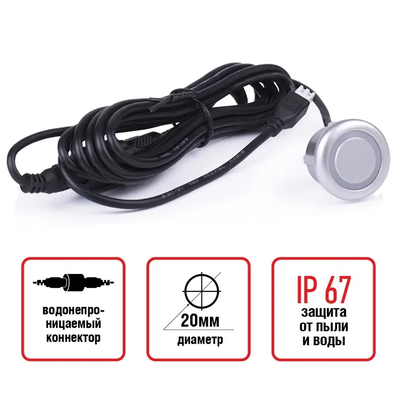 Датчик парктроника 20 мм (серебро) с проводом 2,5м AVS PS-20 (1 шт.)