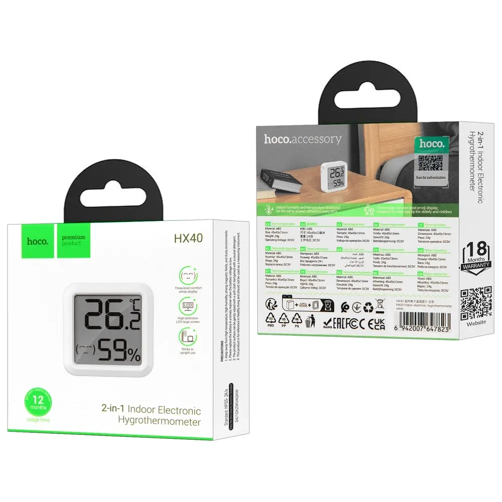 *Датчик температуры и влажности HX40 2в1 Indoor гигротермометр белый Hoco