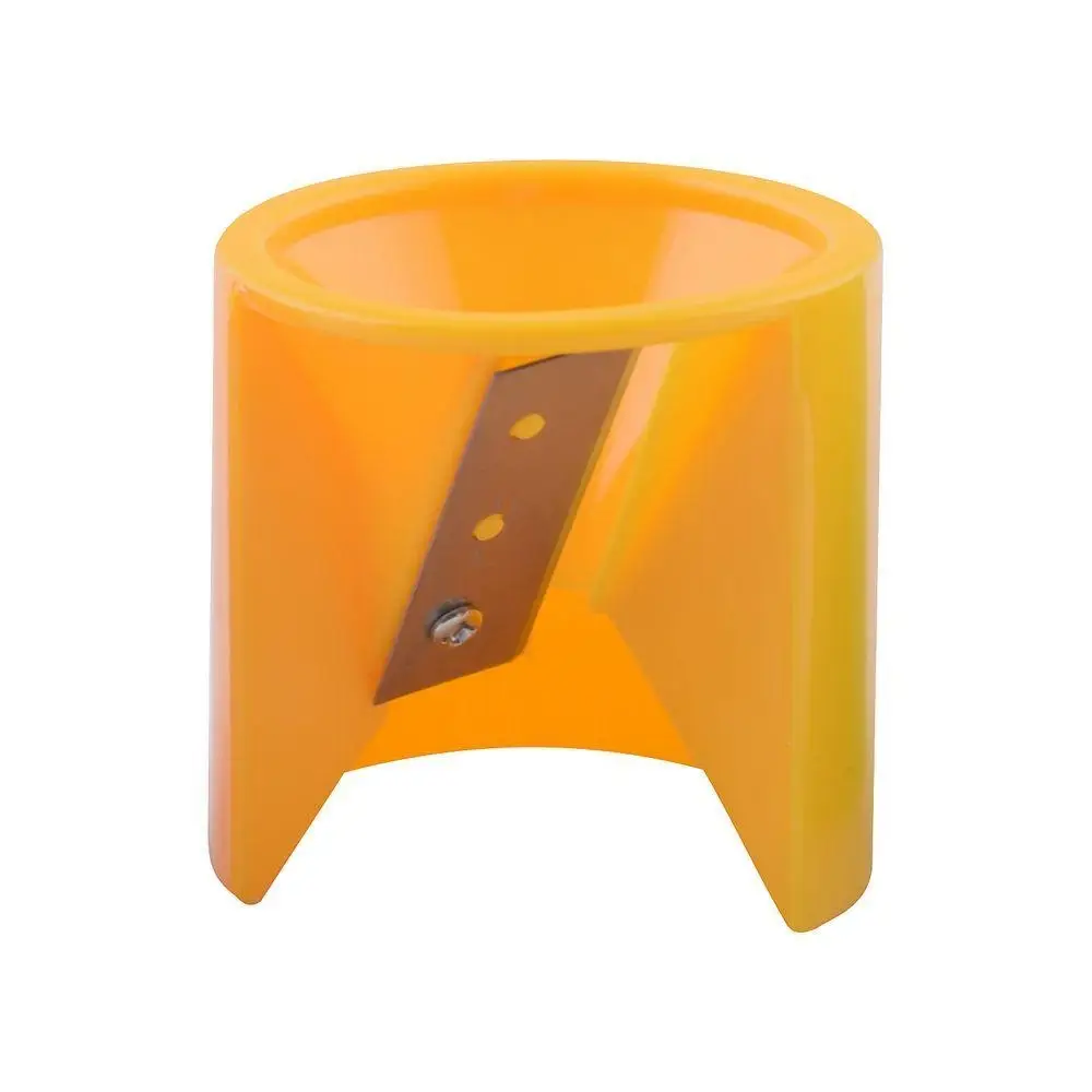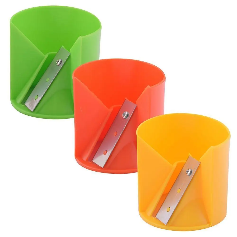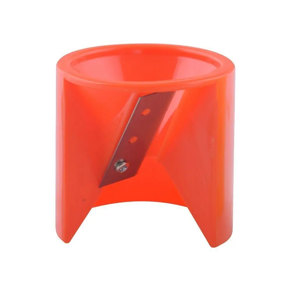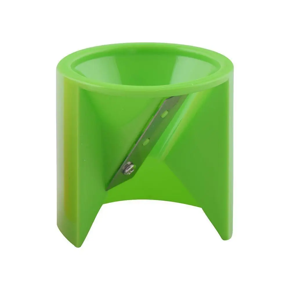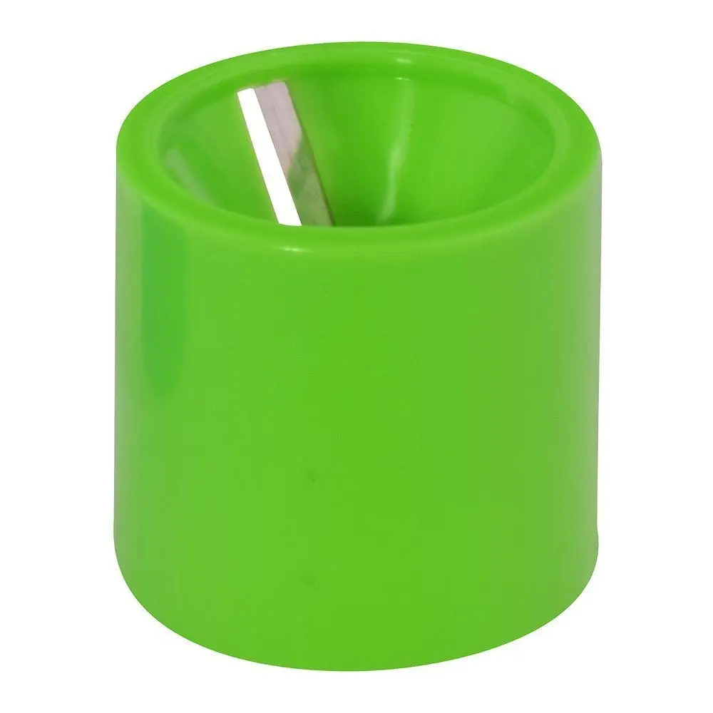 В пластмассовый корпус встроено лезвие из нержавеющей стали, которое эффективно справляется с твердыми корнеплодами и мягкими овощами. Диаметр 5 см.