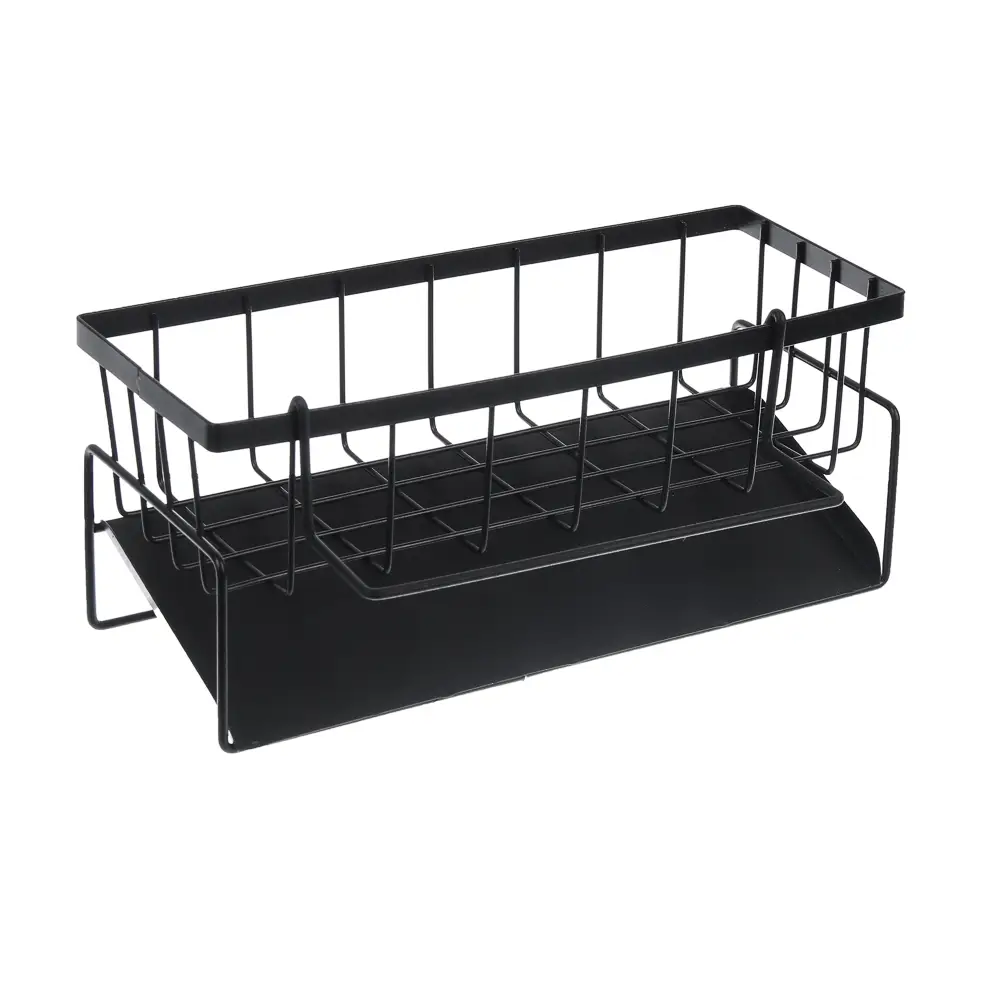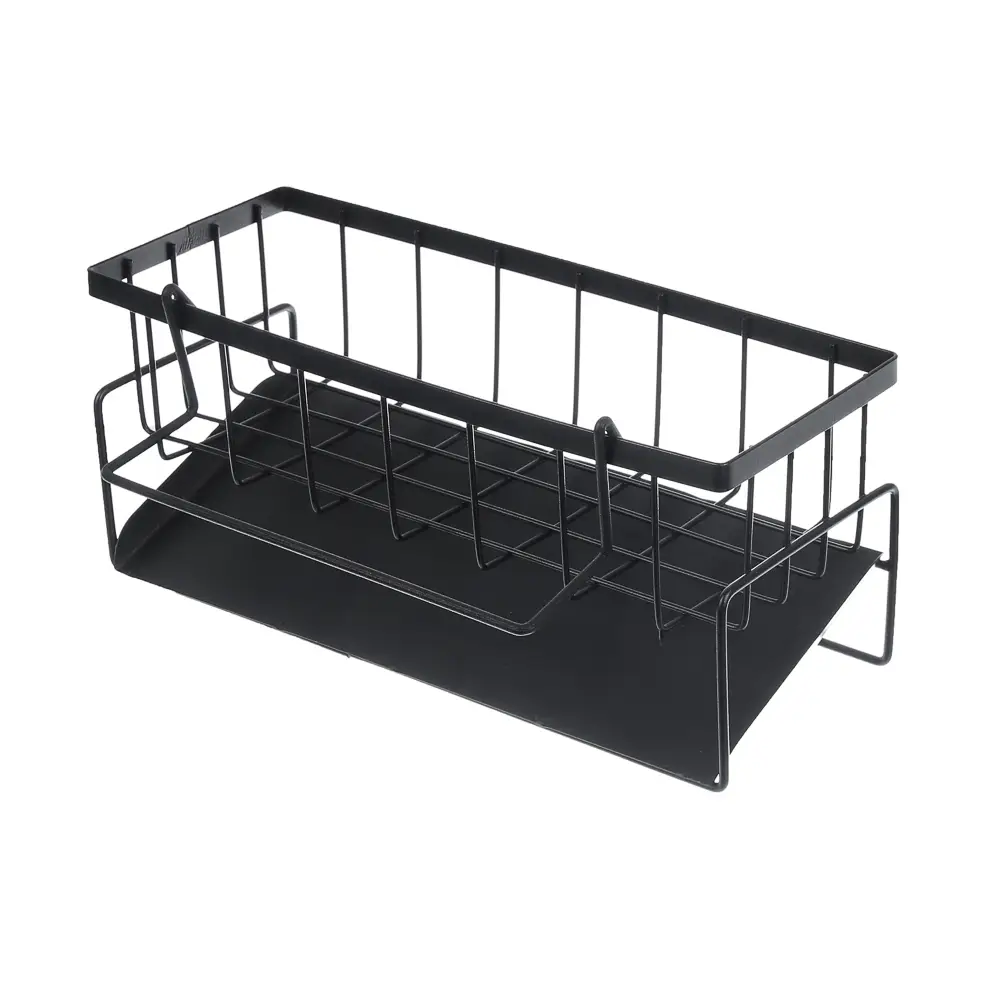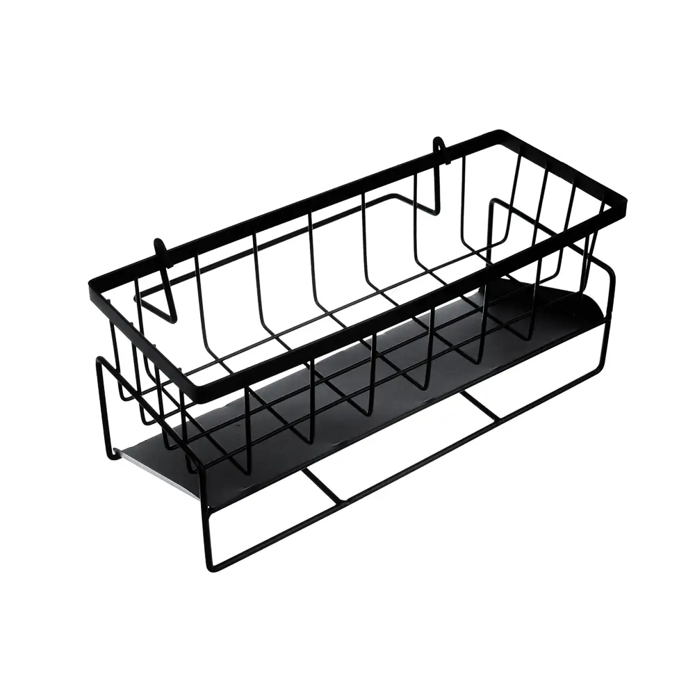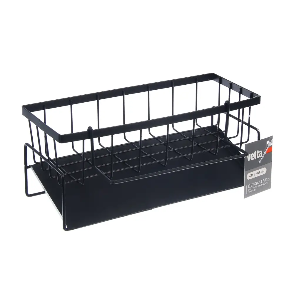 Держатель для губок и моющего VETTA — удобный и функциональный аксессуар для организации пространства возле кухонной мойки. Компактный размер 23×9×10 см позволяет разместить держатель даже на небольшой рабочей поверхности, поддерживая порядок и чистоту. Модель выполнена из прочного металла и оформлена в стильном чёрном цвете, который гармонично вписывается в современный интерьер кухни. Конструкция оснащена сливом-поддоном, обеспечивающим отвод воды и предотвращающим скопление влаги. Дополнительный кронштейн для тряпок позволяет удобно сушить салфетки и полотенца.