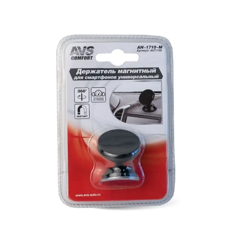 Держатель для смартфонов магнитный на приборную панель AVS AH-1710-M