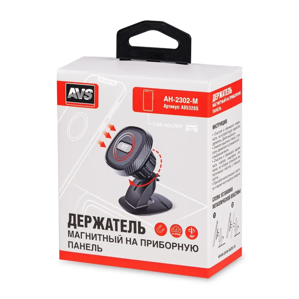 Автомобильный держатель AVS для мобильных устройств обеспечивает надежное крепление и при этом позволяет легко регулировать положение вашего телефона. Легко и надёжно крепится к приборной панели, при помощи клейкой. Данный держатель имеет специальный зажима для провода.