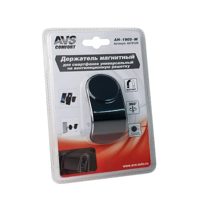 Автомобильный держатель AVS для мобильных устройств обеспечивает надежное крепление и при этом позволяет легко регулировать положение вашего телефона. В комплекте с магнитным держателем идут две металлические пластины разной формы и размера. Лёгкий монтаж на решётку вентиляции в автомобиле.