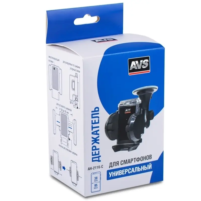 Универсальный держатель – удобный и простой в использовании. Предназначен для устройств шириной от 38 до 95 мм. Легко и надёжно крепится к лобовому стеклу или приборной панели, при помощи вакуумной присоски. Конструкция всех подвижных частей позволяет закрепить держатель на разном расстоянии от стекла и под любым углом, чтобы держать устройство в поле своего зрения. Амортизирующие вставки поглощают вибрации и надёжно фиксируют устройство.