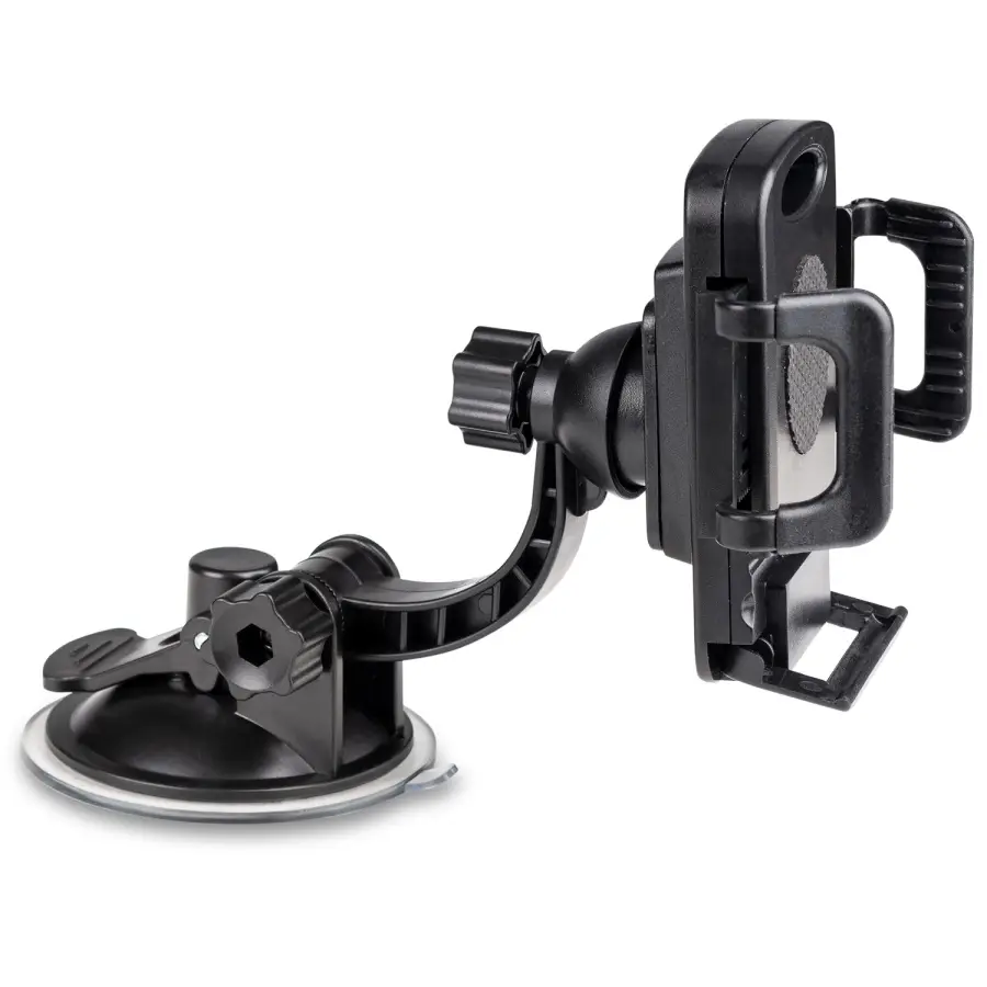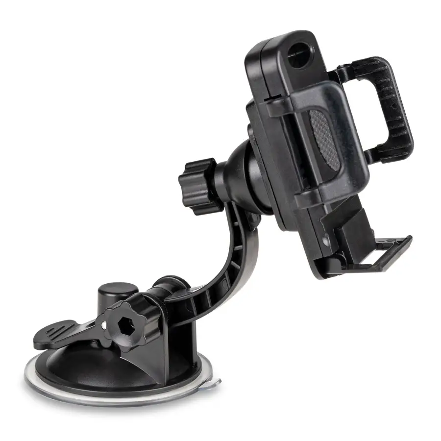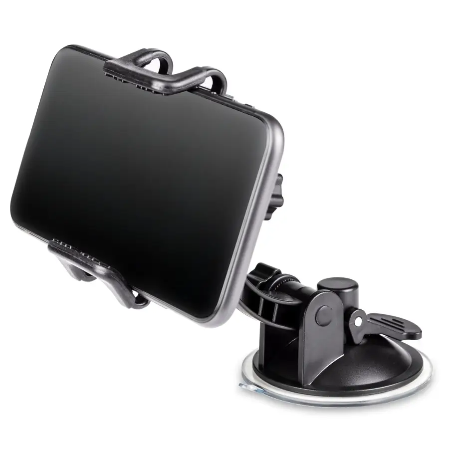 Универсальный держатель – удобный и простой в использовании. Предназначен для устройств шириной от 45 до 95 мм. Легко и надёжно крепится к лобовому стеклу или приборной панели, при помощи вакуумной присоски. Конструкция всех подвижных частей позволяет закрепить держатель на разном расстоянии от стекла и под любым углом, чтобы держать устройство в поле своего зрения. Амортизирующие вставки поглощают вибрации и надёжно фиксируют устройство.