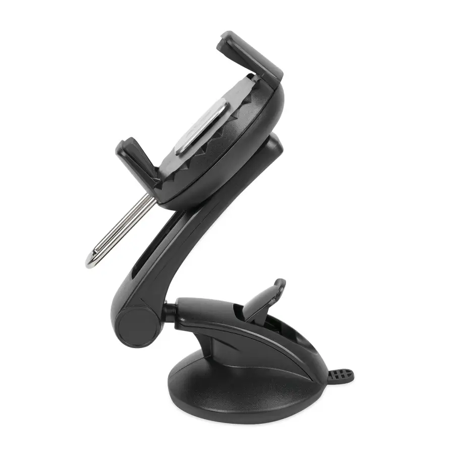 Конструкция держателя позволяет закрепить его на приборной панели или на лобовом стекле, под любым углом, чтобы держать устройство в поле зрения