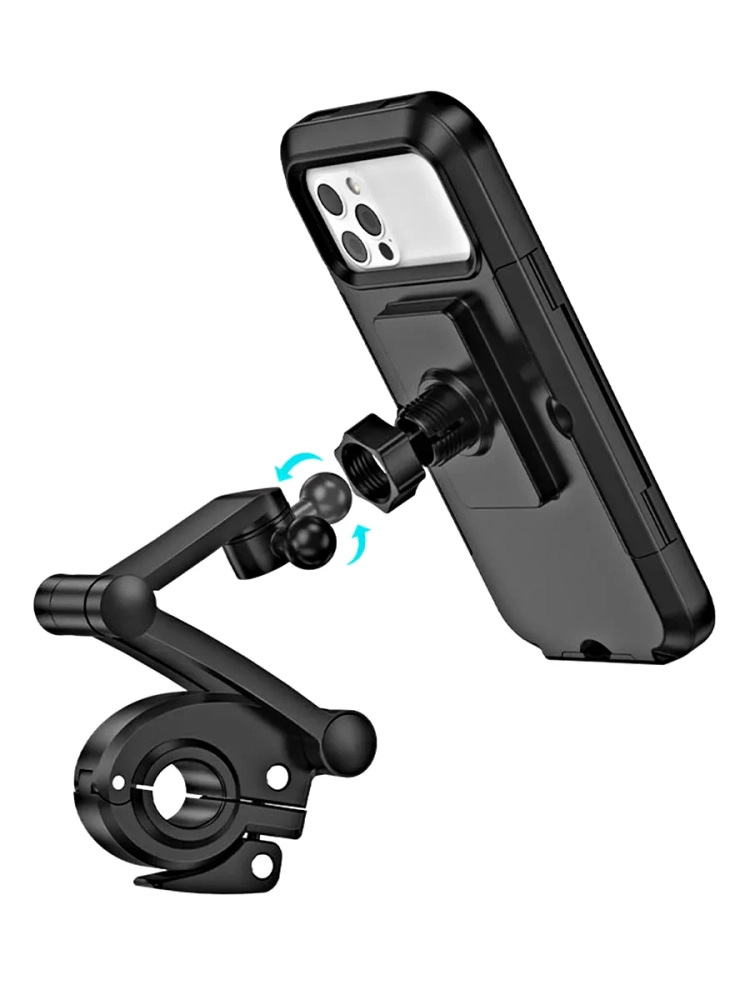 Держатель для телефона на электросамокат, держатель для телефона в мотоцикл, велосипед, скутер является удобным и безопасным способом использования телефона во время поездки. Он обеспечивает легкий доступ к телефону и позволяет пользователю использовать его в качестве навигационного инструмента, музыкального плеера или просто для просмотра сообщений и уведомлений, не отвлекаясь от управления транспортным средством. Держатель для детской коляски для комфортной прогулки. Также можно использовать как держатель для телефона на штатив.
