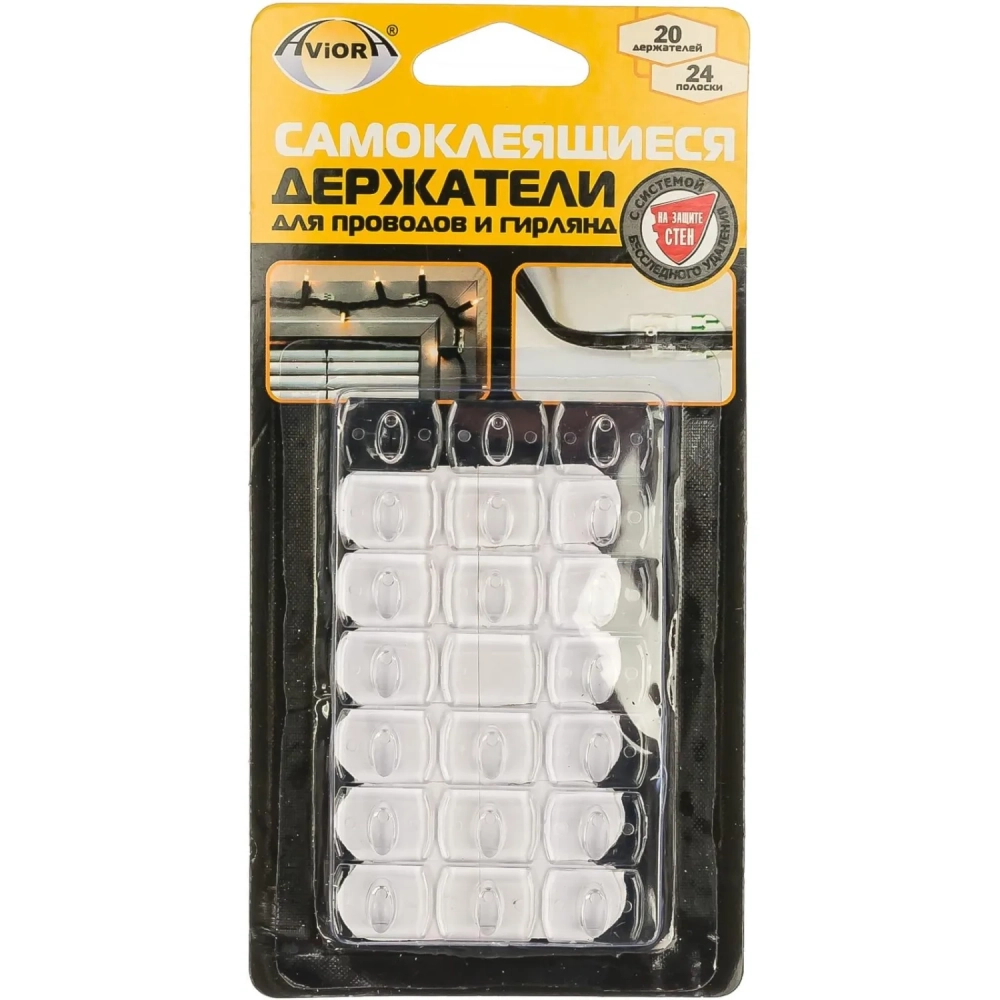 Держатель самоклеящийся для проводов и гирлянд, 20 шт/уп, AVIORA 302-108