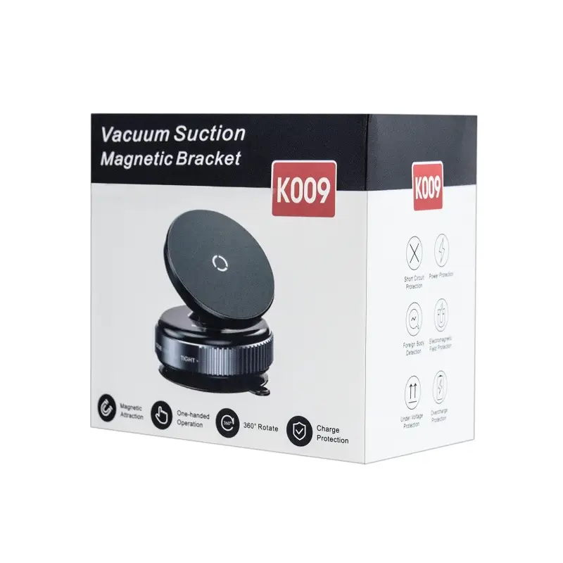 Держатель автомобильный вакуумный с MagSafe K009 - это многофункциональный держатель сочетающий в себе надежную вакуумную присоску и мощный магнит MagSafe, обеспечивая прочную фиксацию телефона на любой гладкой поверхности. В комплекте идет магнитное кольцо, которое можно приклеить на телефон без поддержки MagSafe.