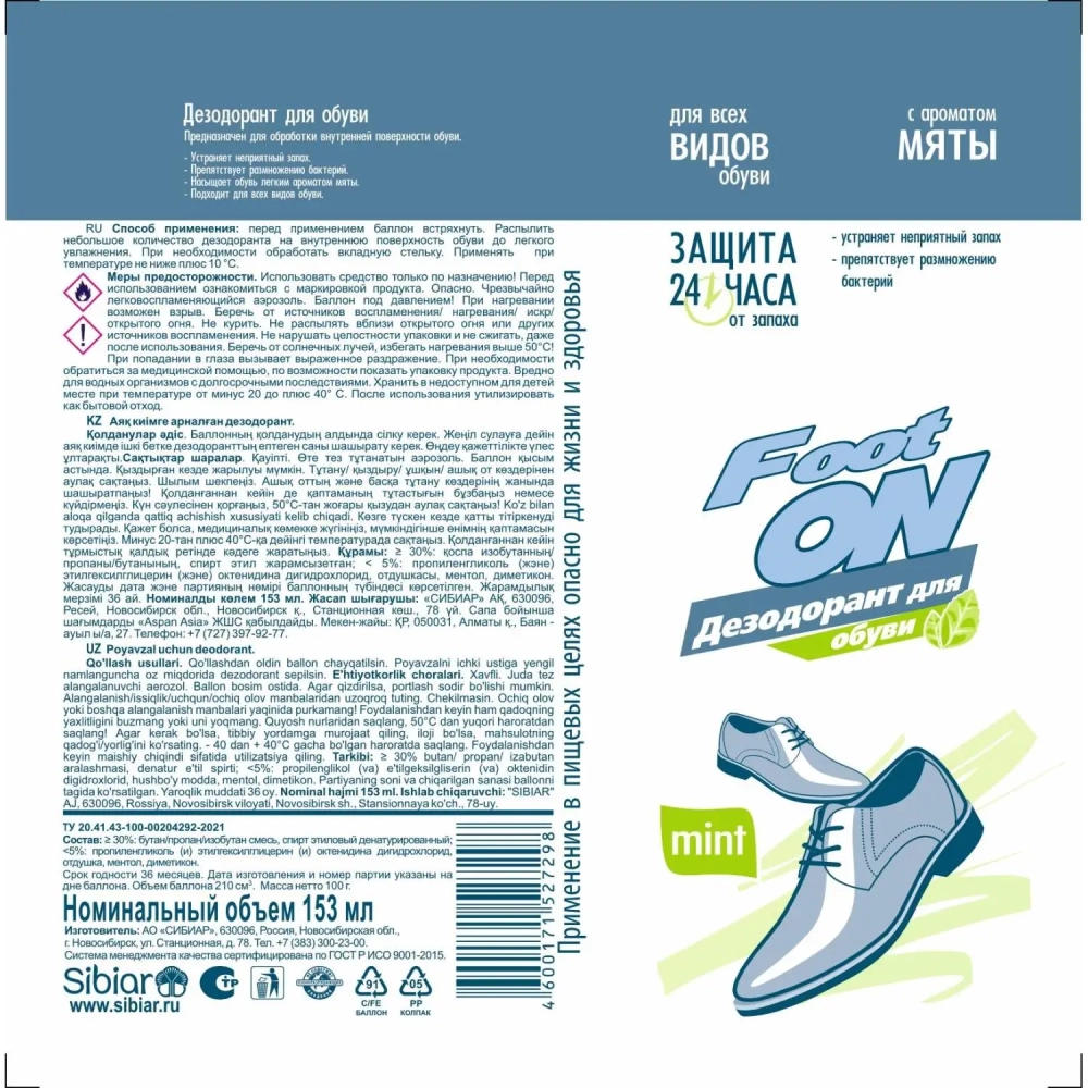 Дезодорант для обуви с ароматом мяты 153 мл., 5-10.01.004.01