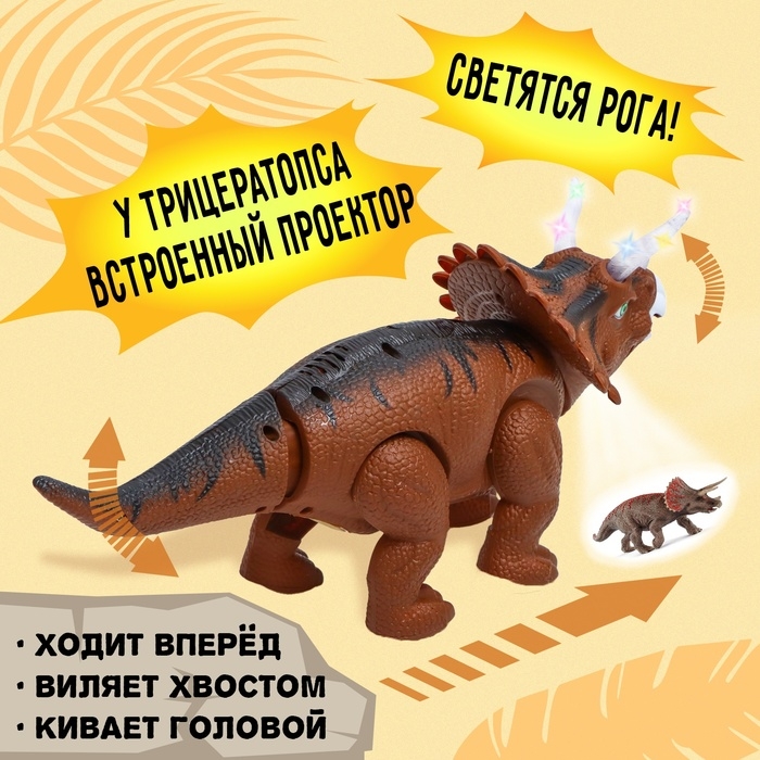 Динозавр «Трицератопс», откладывает яйца, проектор, свет и звук, цвет коричневый