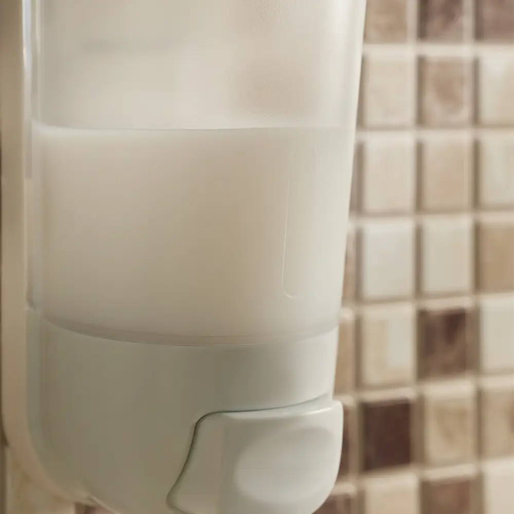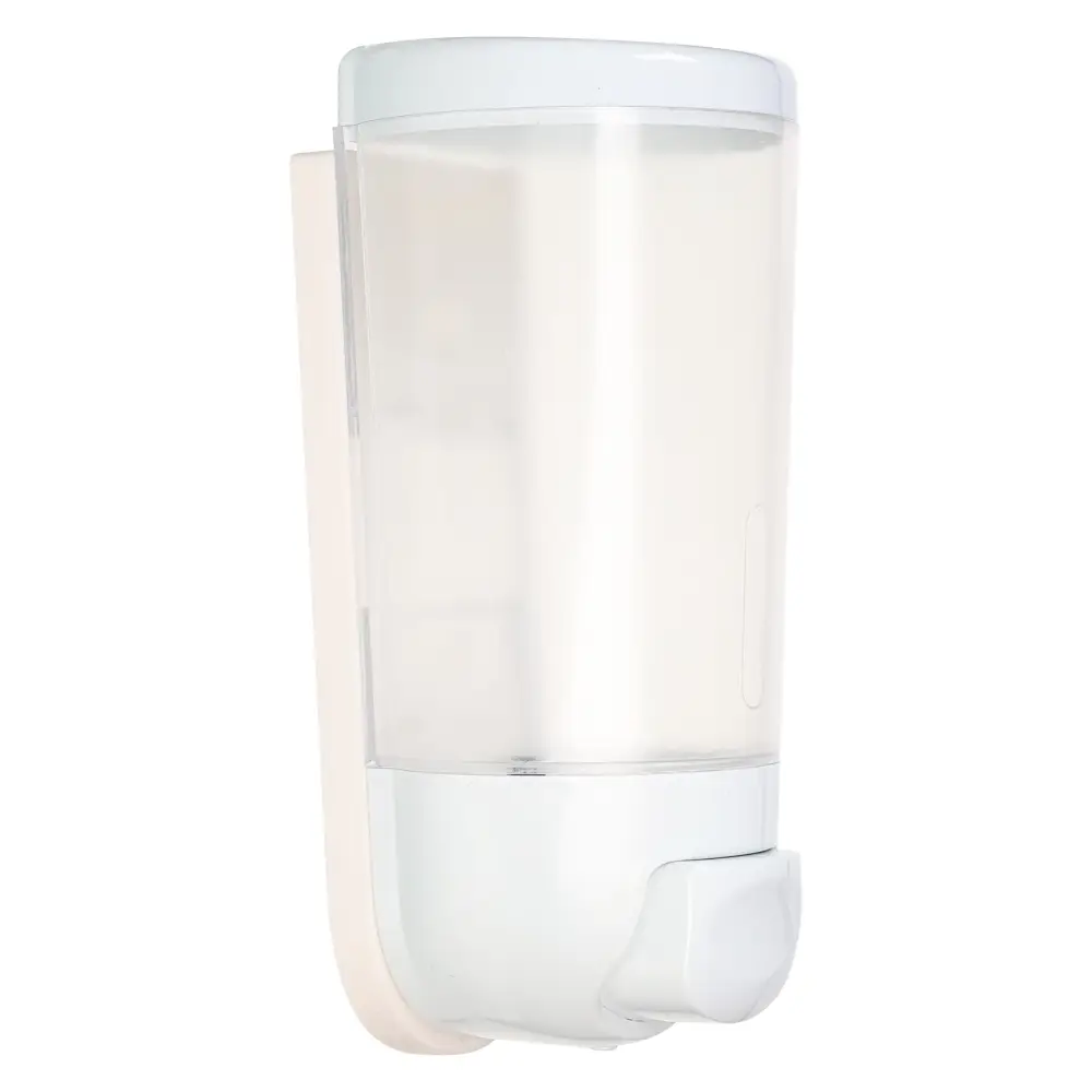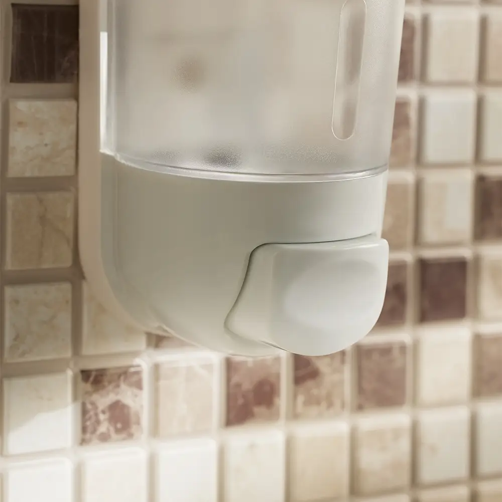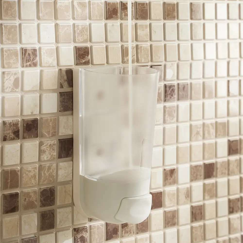 Настенный пластиковый дозатор для жидкого мыла объемом 400 мл предназначен для удобной подачи жидких моющих средств: мыла, геля для душа или шампуня. Полупрозрачный резервуар позволяет контролировать степень наполненности емкости. Мыло выдается путем нажатия на кнопку в нижней части корпуса. Дозатор плотно крепится к стене. Крепеж входит в комплектацию. Подходит как для дома, так и для мест общественного пользования.