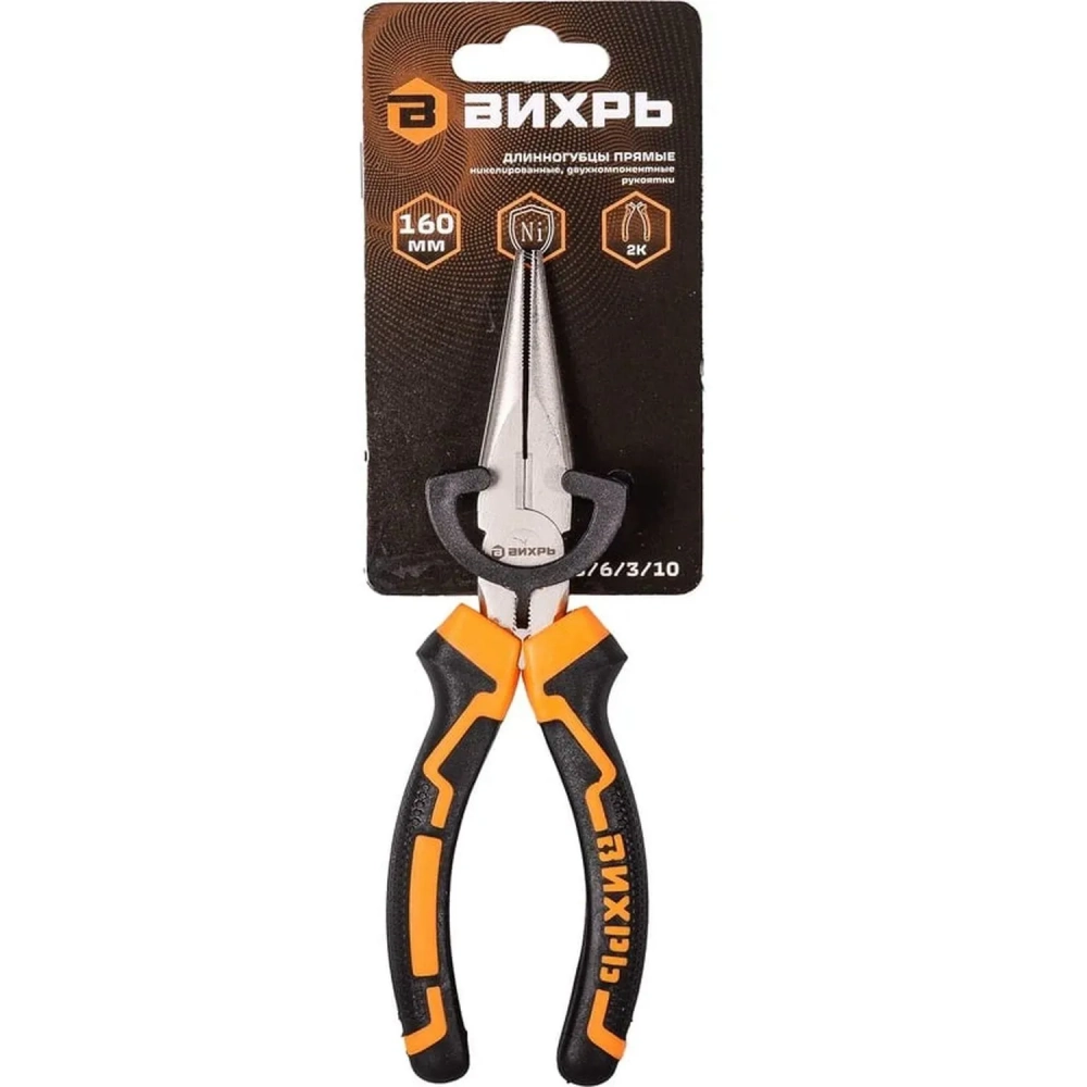 Длинногубцы прямые,160мм, никел., двухкомпон. рукоятки Вихрь73/6/3/10