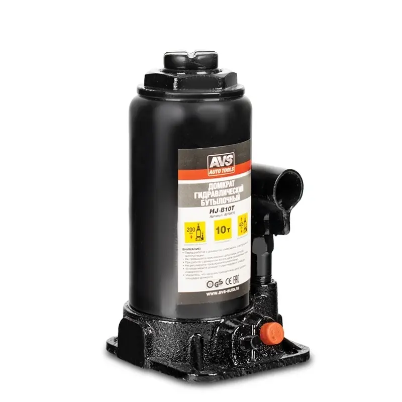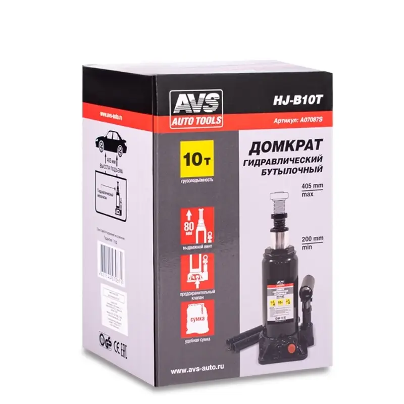 Домкрат гидравлический AVS HJ-B10T, 10т, 200-405мм. с клапаном (сумка, ремкомплект)