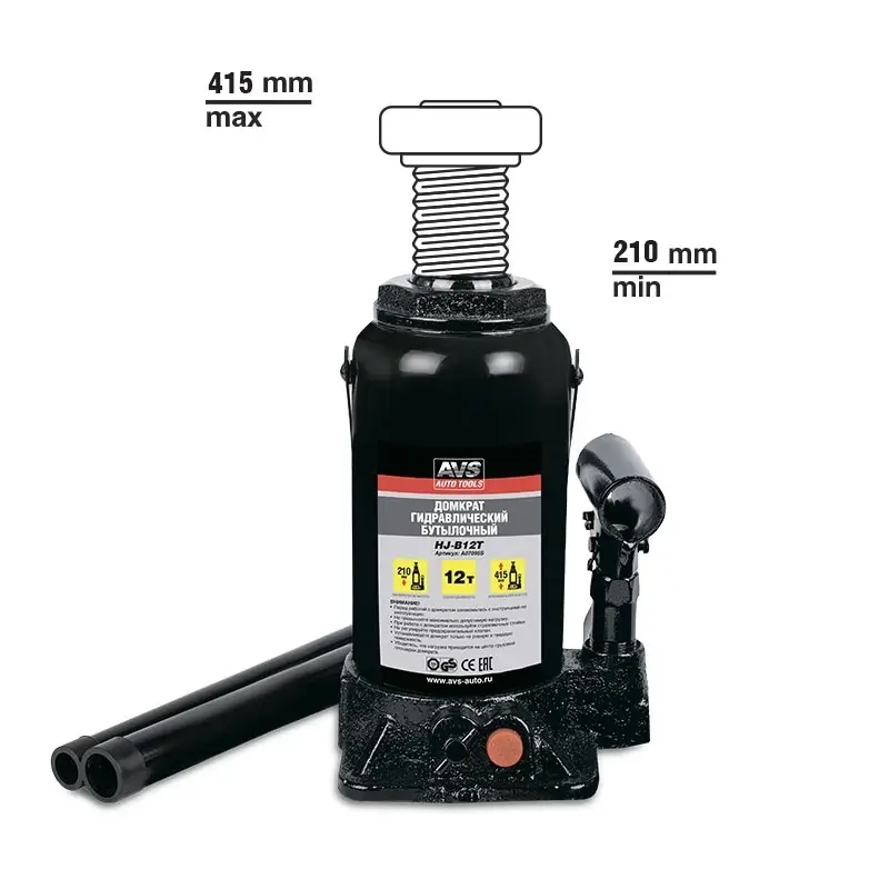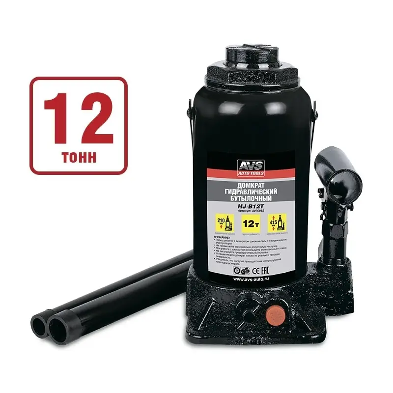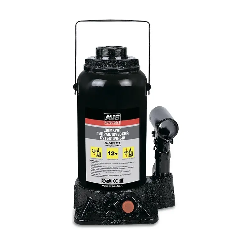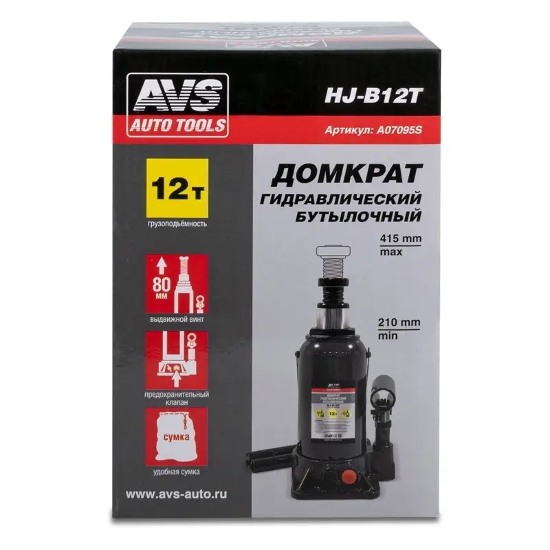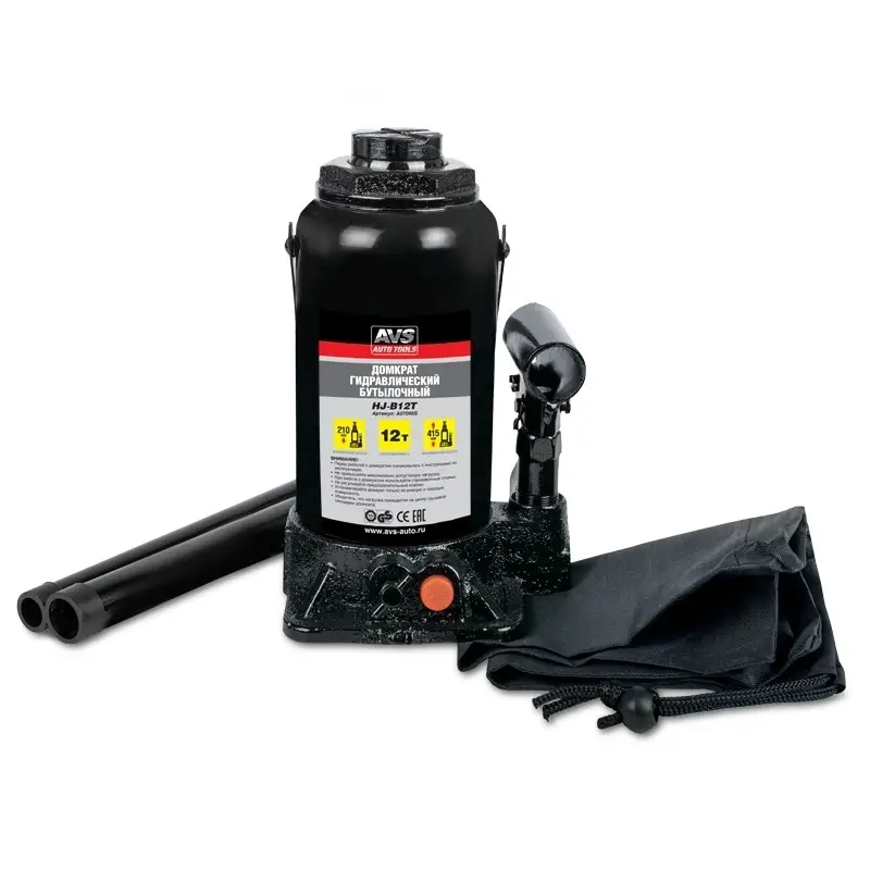 Домкрат гидравлический AVS HJ-B12T, 12т, 210-415мм. с клапаном (сумка, ремкомплект)