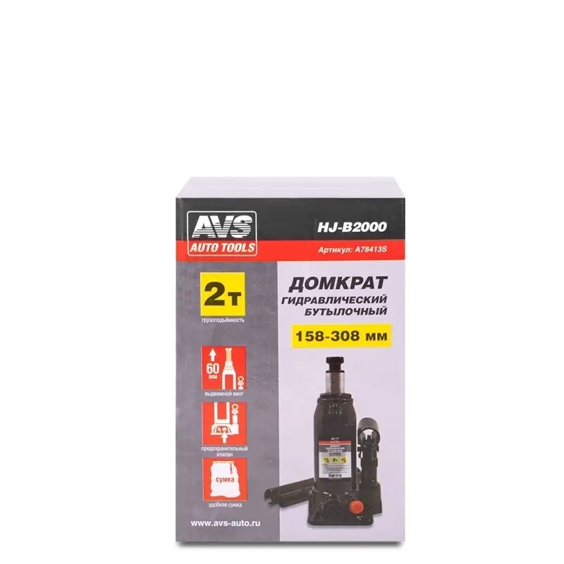 Домкрат гидравлический AVS HJ-B2000, 2т, 158-308мм. с клапаном (сумка, ремкомплект)