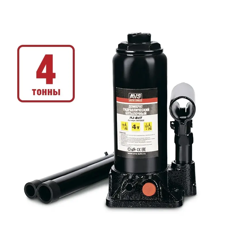 Домкрат гидравлический AVS HJ-B4T, 4т, 180-350мм. с клапаном (сумка, ремкомплект)