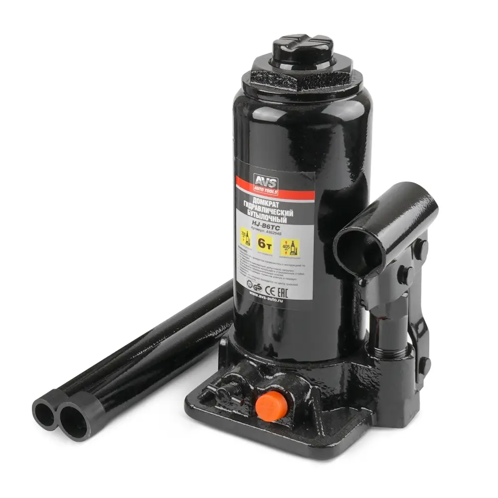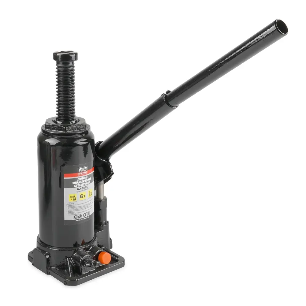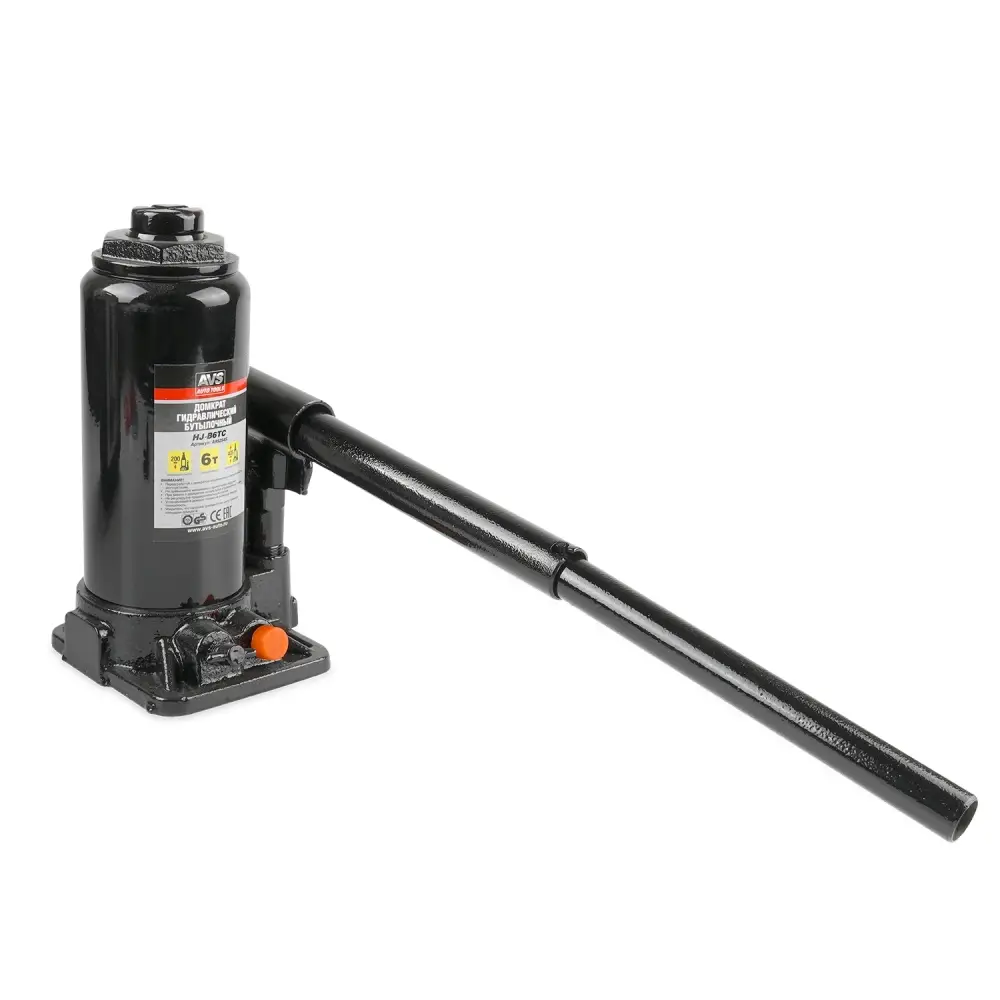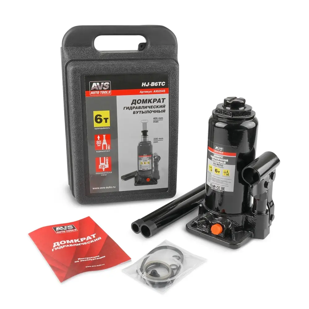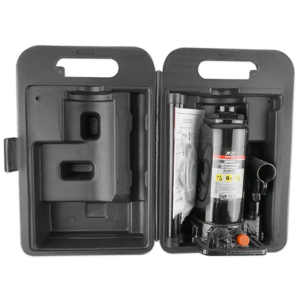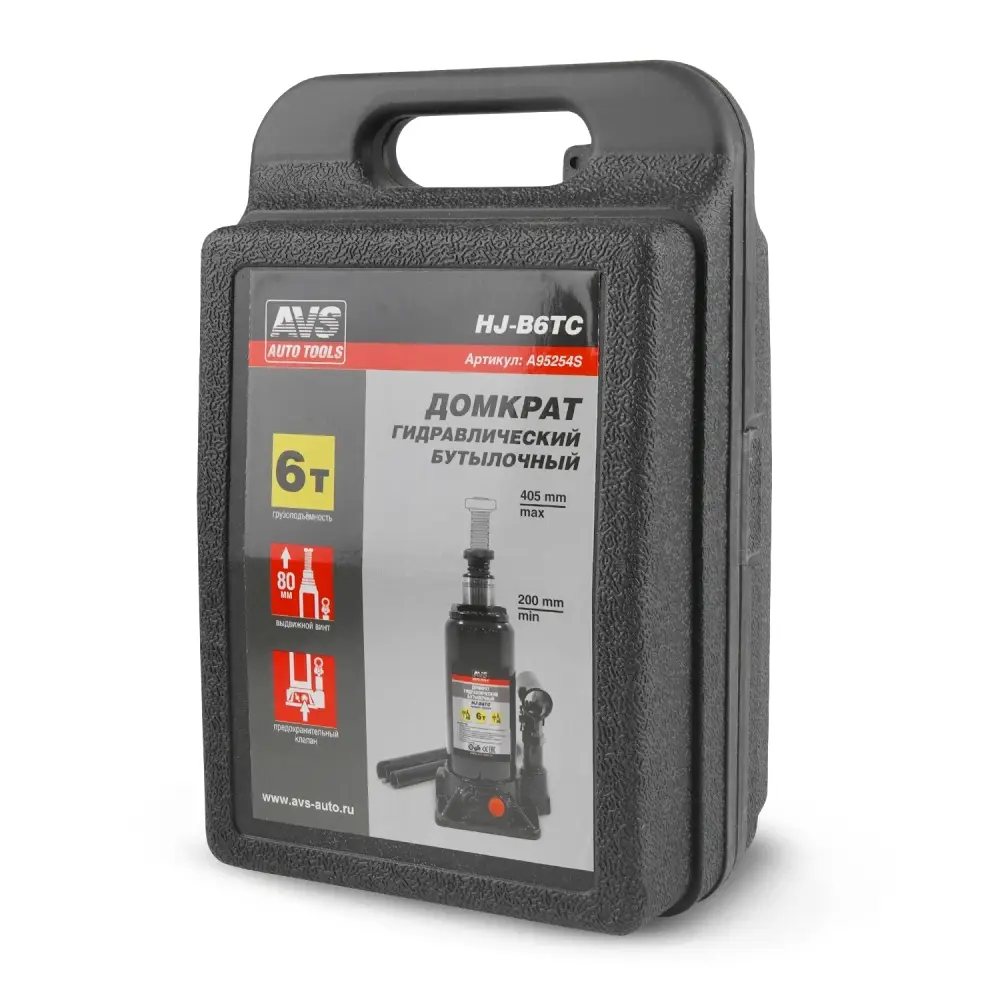 Домкрат гидравлический AVS HJ-B6TC, 6т, 200-405мм. с клапаном, в кейсе (ремкомплект)
