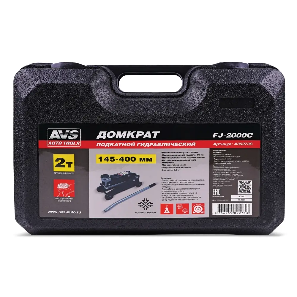Домкрат подкатной AVS FJ-2000C, 2т, 145-400мм. в кейсе, компакт