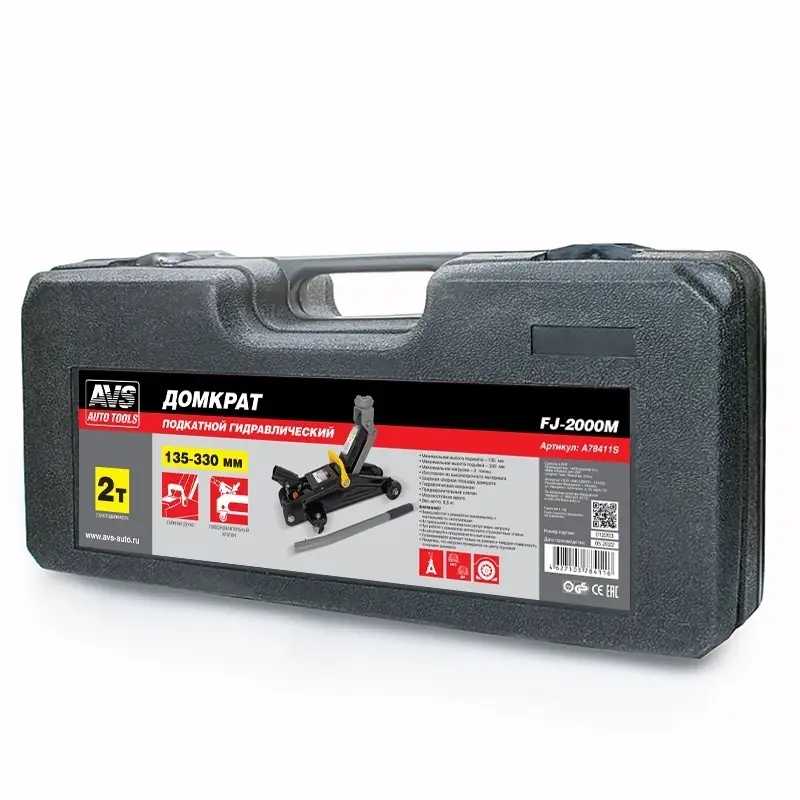 Домкрат подкатной AVS FJ-2000M, 2т, 135-330мм. в кейсе