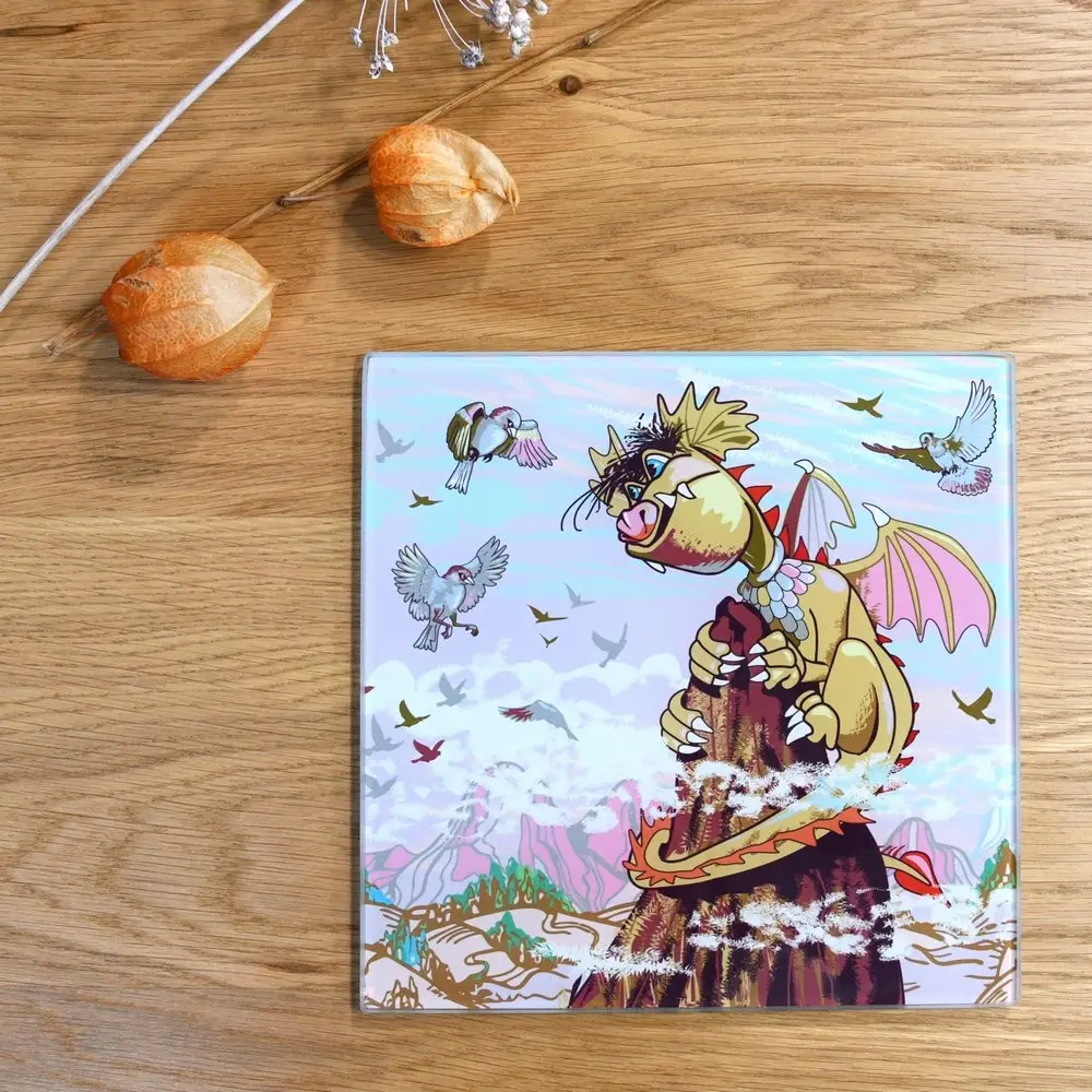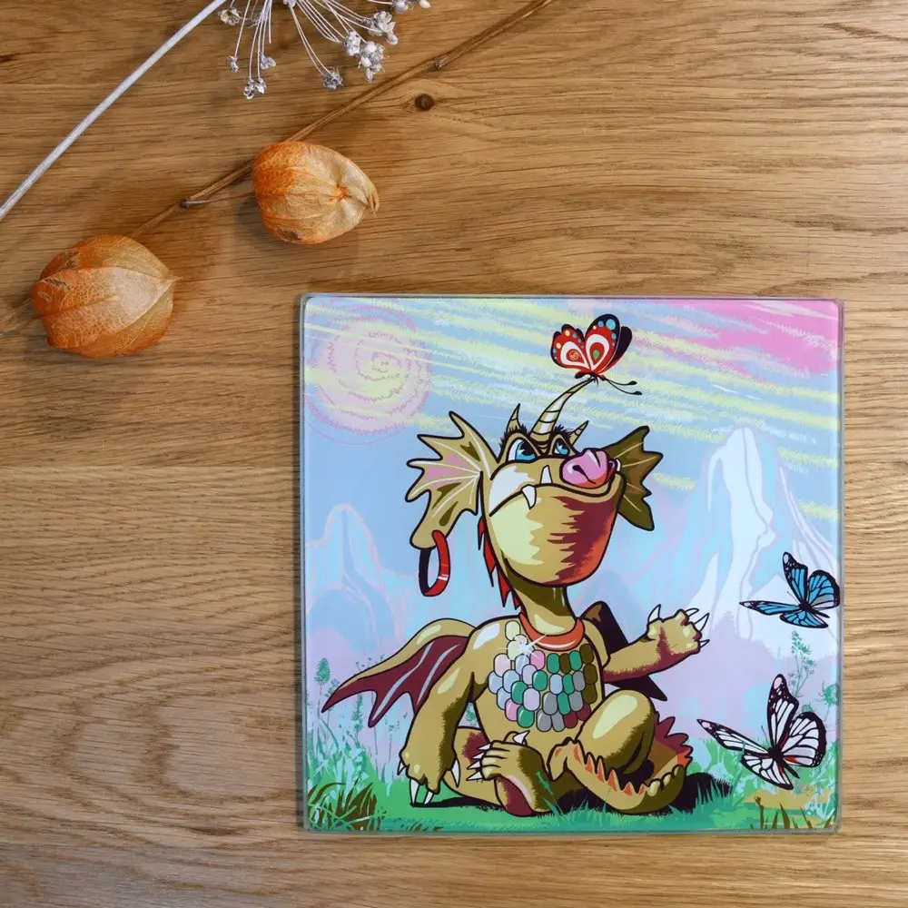 Доска разделочная Дракон весельчак 18х18 см (ассортимент)