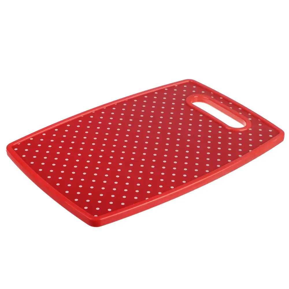 Доска разделочная тм VETTA, 20х30х1,2 см, полипропилен – это отличный выбор для ежедневного использования на домашней кухне. Идеально подходит для нарезки овощей, фруктов, мяса, рыбы и хлеба. Яркий цвет оживит интерьер кухни. Материал не впитывает влагу, соки и запахи продуктов, препятствуя размножению бактерий. Доска устойчива к деформации, не скользит по столу и выдерживает активную работу ножом, не снижая остроту заточки. Прорубная ручка удобна для переноски, а также для вертикального хранения на крючке. 2 дизайна в ассортименте.