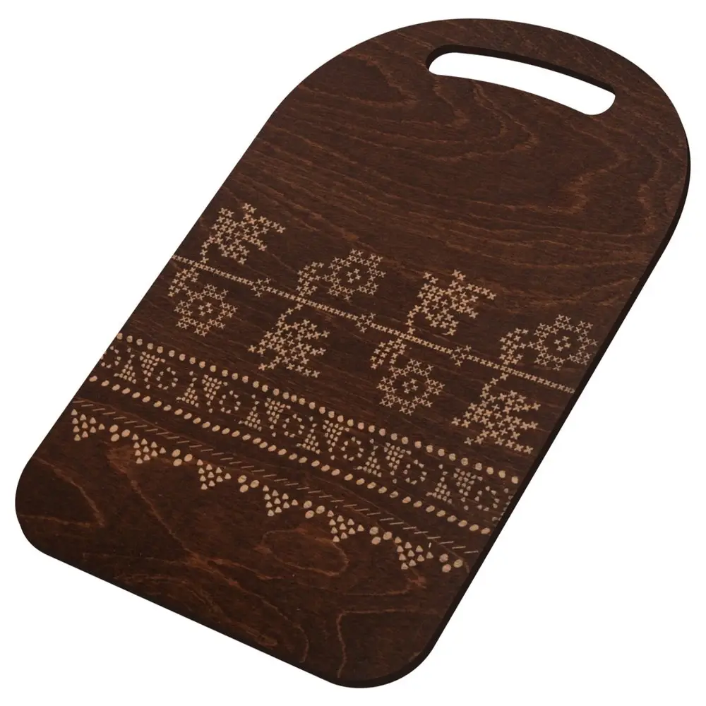 Декорированная, с одной стороны, доска может стать прекрасным подарком и достойным украшением интерьера кухни, столовой, гостиной.