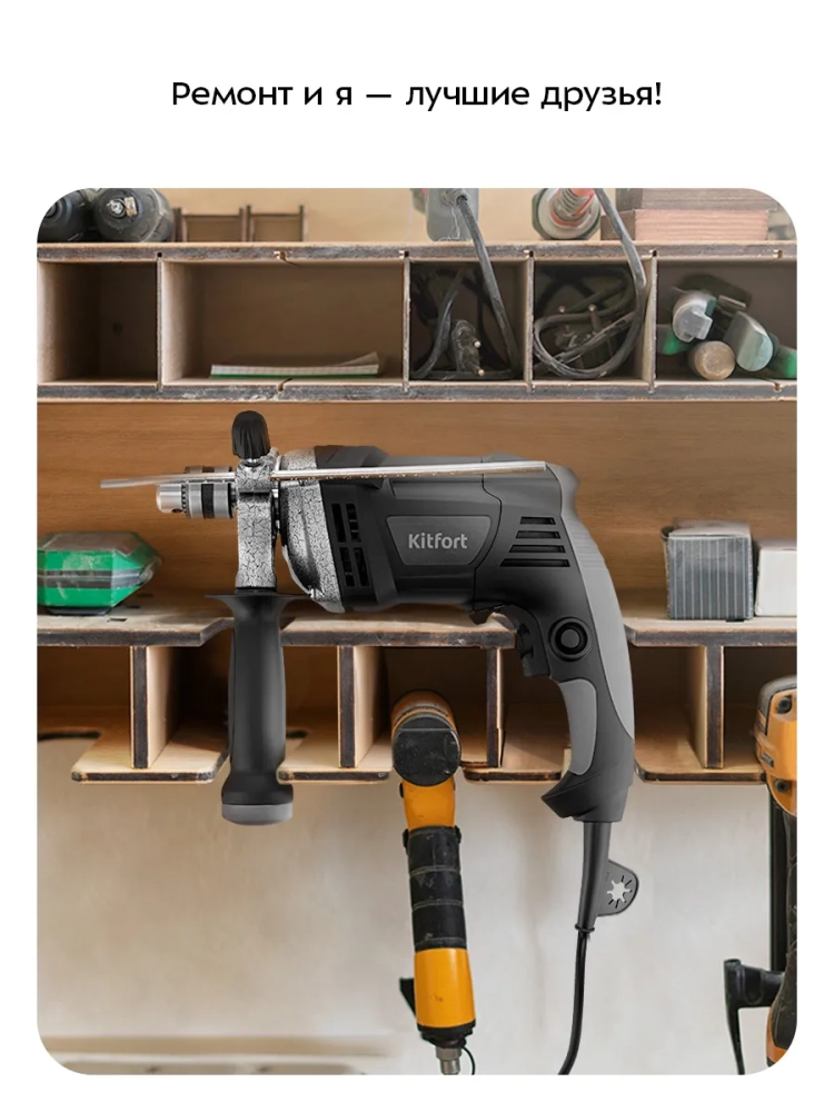 Дрель Kitfort КТ-6532 поможет вам провести ремонтные работы или собрать мебель. С ней вы легко и быстро сможете просверлить отверстия в разных поверхностях.